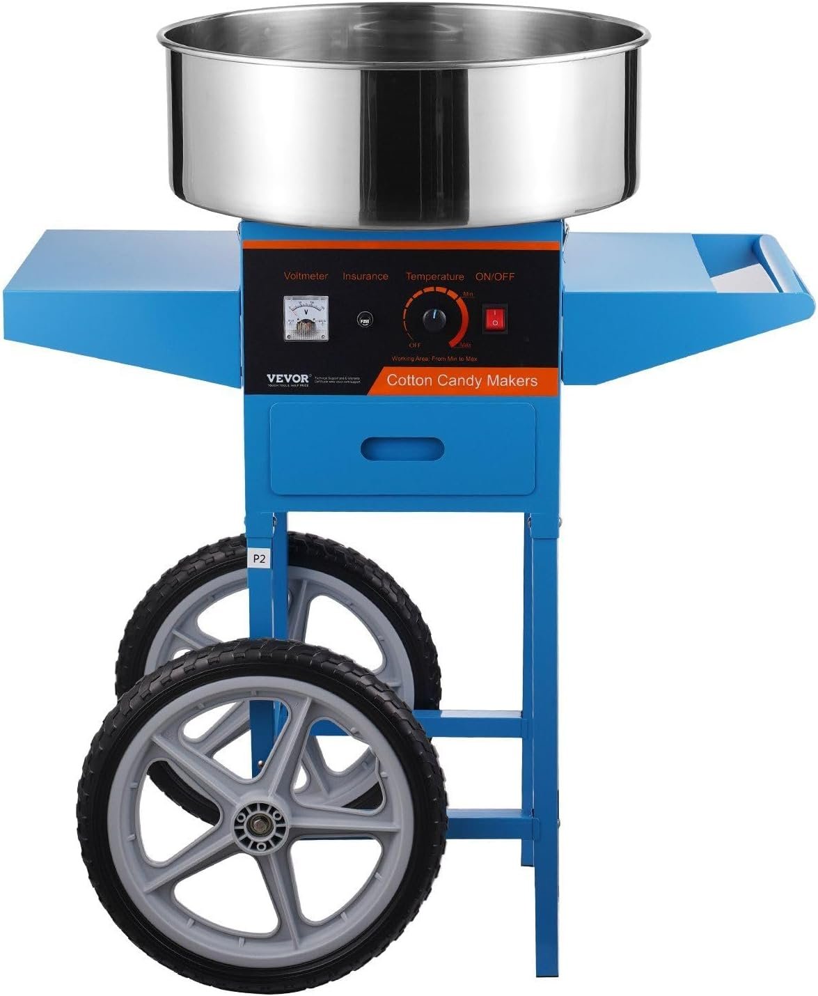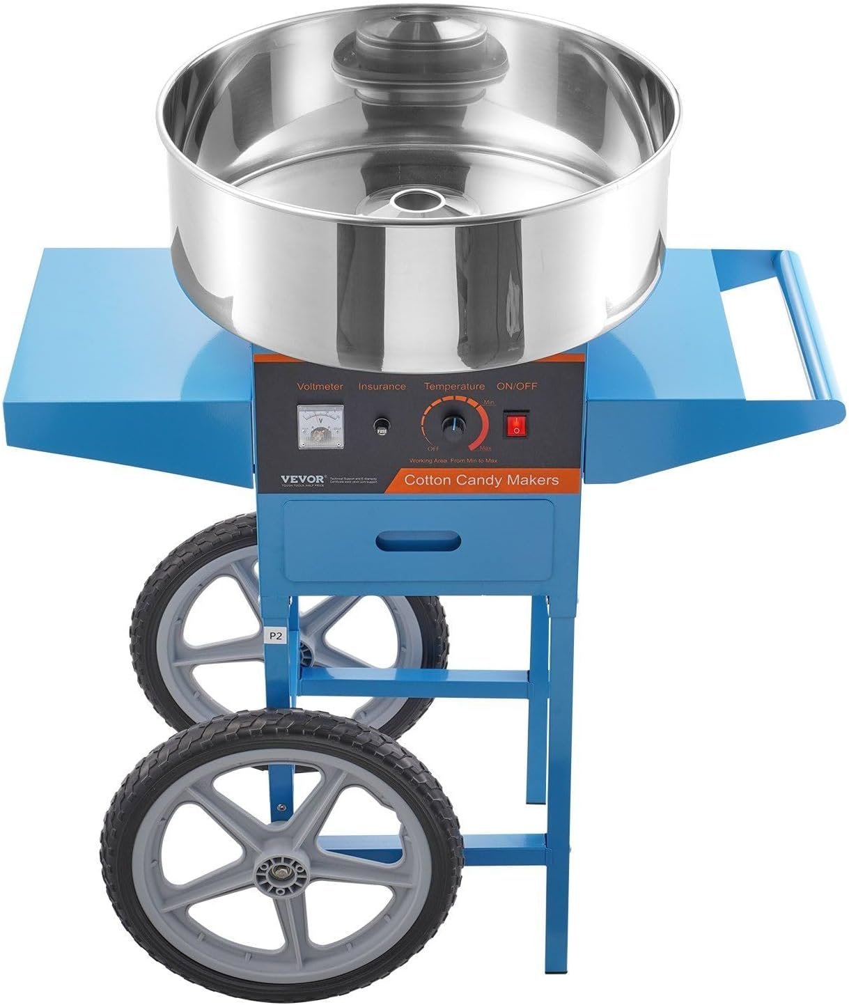 Electric Cotton Candy Machine with Cart, 1000W Commercial Candy Floss Maker with Stainless Steel Bowl, Sugar Scoop and Drawer, Perfect for Home, Kids Birthday, Family Party, Blue