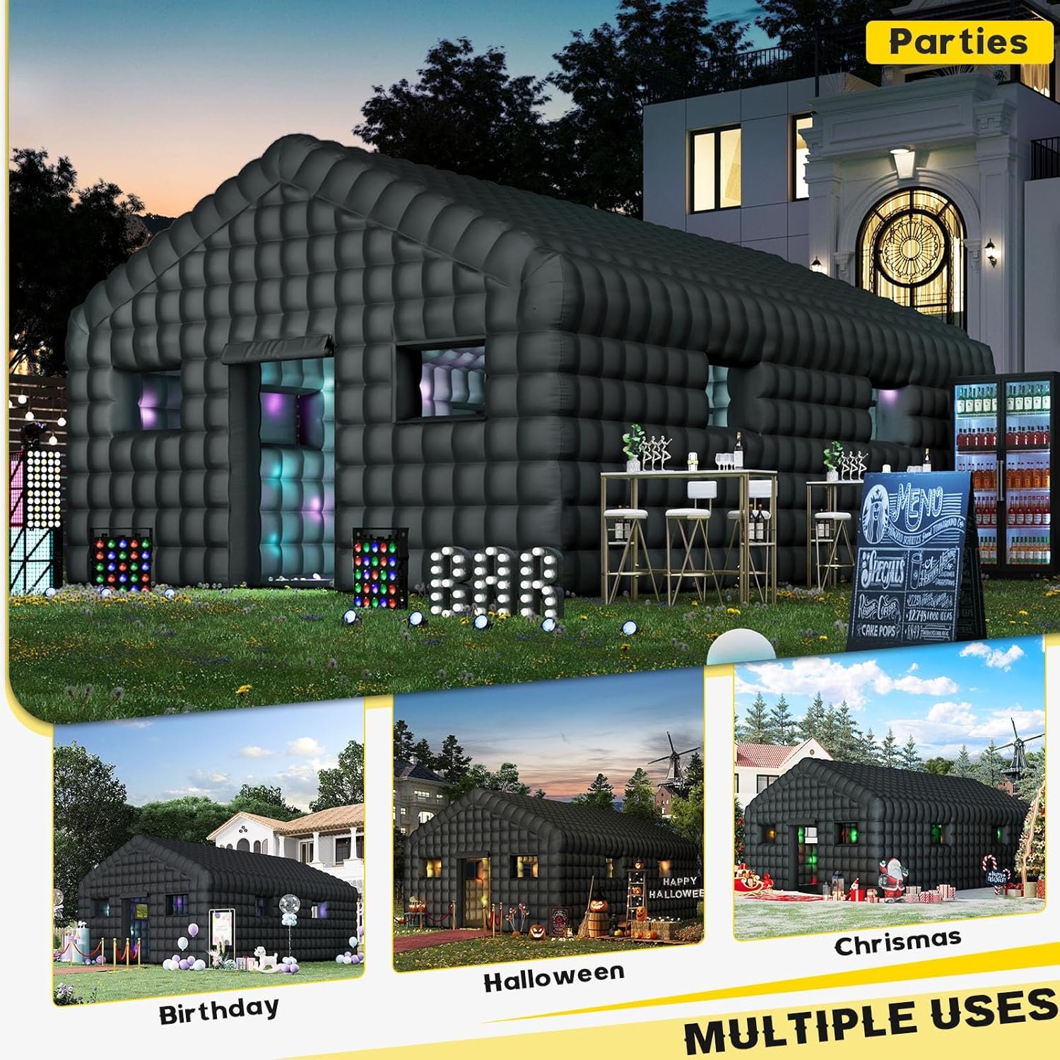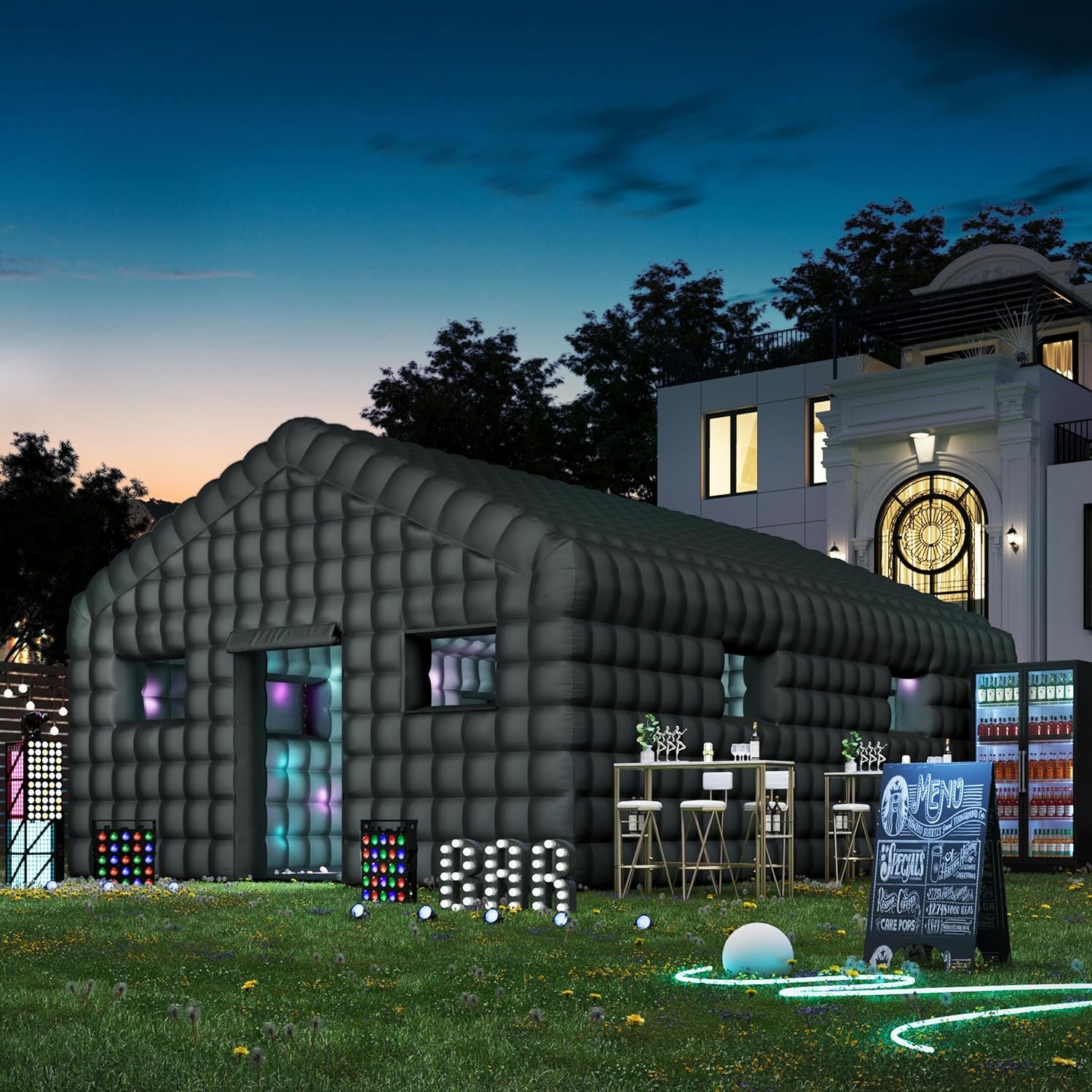 EROMMY 30x20x13 FT Large Black Inflatable Nightclub, Blow Up Party Tent Portable with 1100W Blower, Disco Night Club Tent for Adult Birthday Party Business Rental