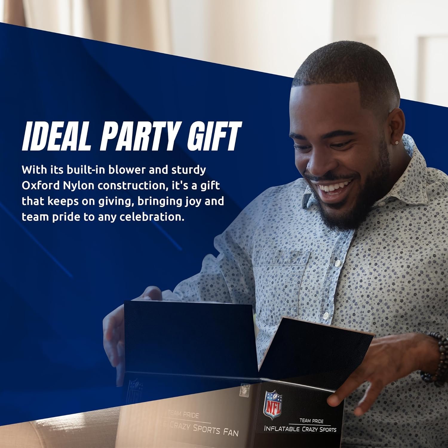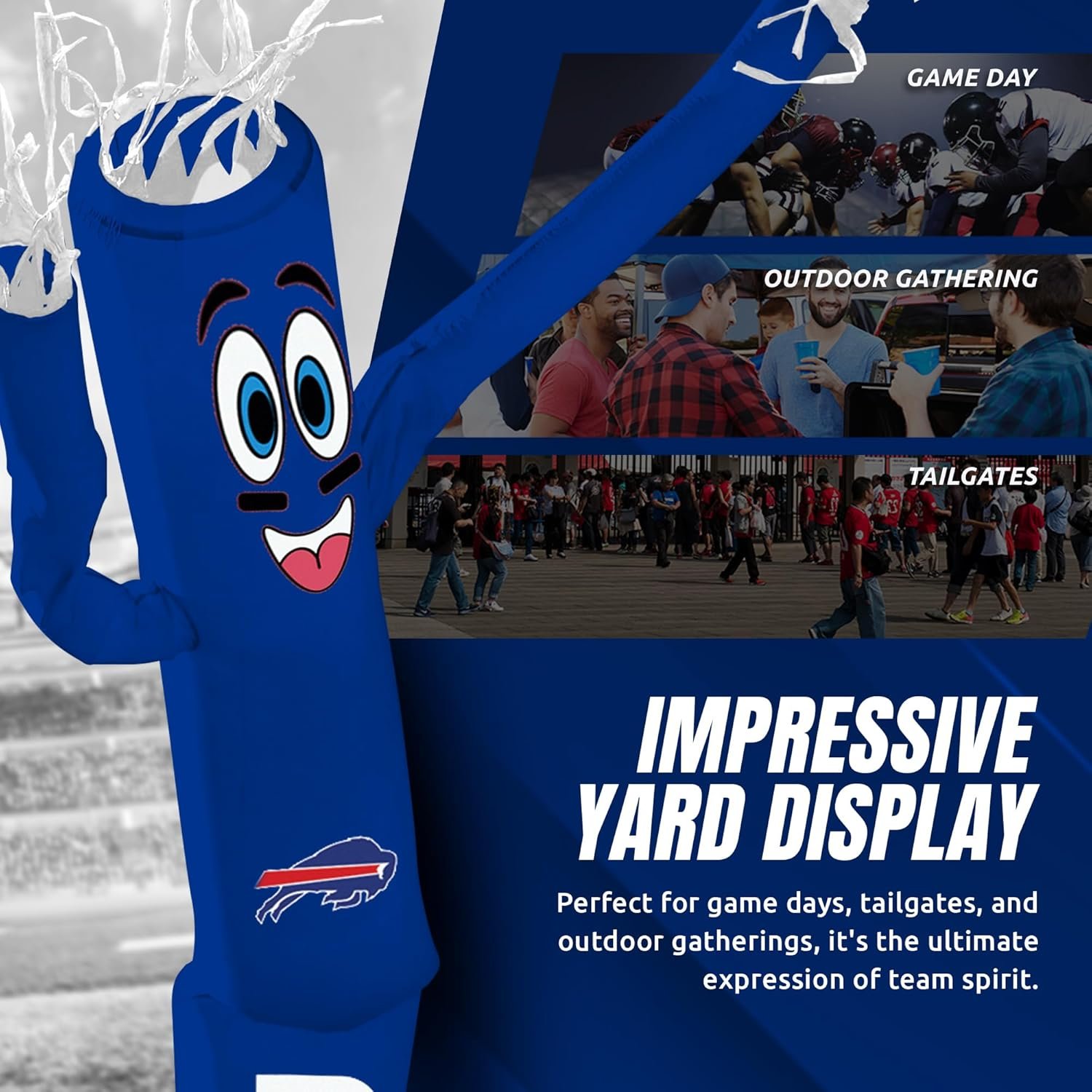 The officially licensed Buffalo Bills inflatable is an 8-foot tall decoration perfect for outdoor parties, BBQs, and tailgates. Featuring a built-in blower, LED lights, and durable weather-resistant nylon, it withstands outdoor elements while adding team spirit to any setting. With standard outlet compatibility and sturdy construction, it’s ideal for celebrations year-round. The inflatable makes a fantastic gift for Buffalo Bills fans, promoting fun and excitement, especially for kids. Elevate your outdoor decor with this vibrant centerpiece that brings lasting joy and team pride. Priced from $28.99 to $191.99.
