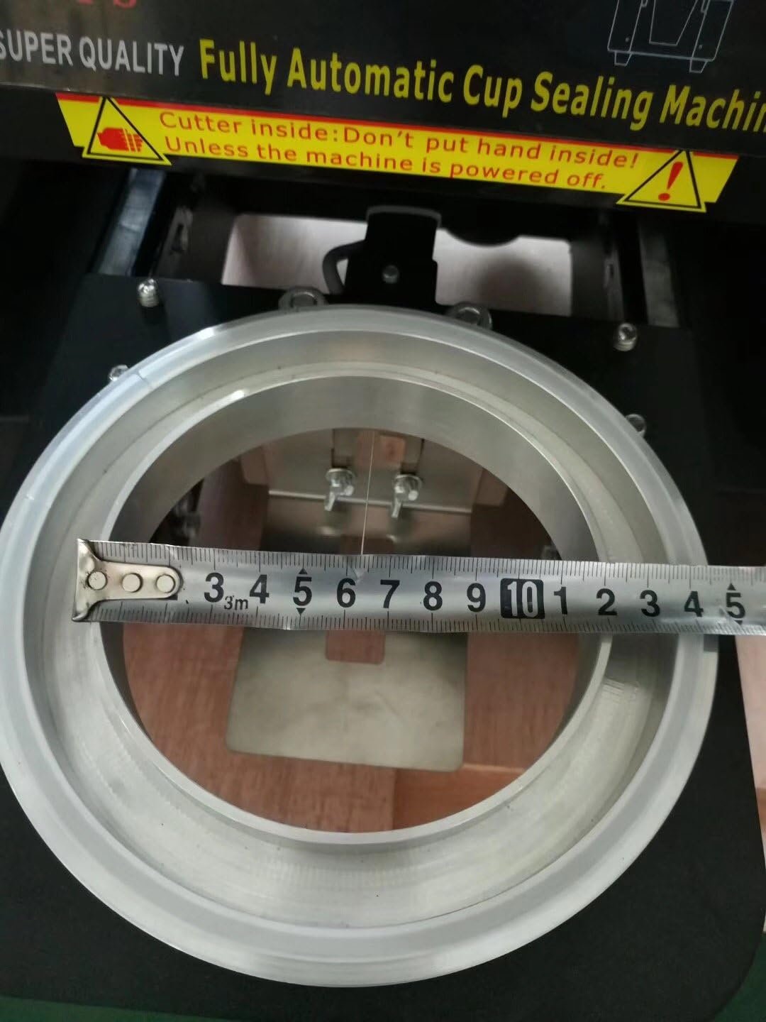 This machine is designed solely for sealing 98mm diameter cups and cannot accommodate other sizes. Ensure the roll film material matches the cup material (e.g., PP with PP, PET with PET). Different materials require different sealing temperatures; for PP cups, set around 170 degrees. The machine operates at 110V/60Hz—avoid 220V connections. Ensure proper installation of the roll film, as incorrect setup will prevent sealing. The cup height must not exceed 18cm. For any issues, please contact us for assistance.