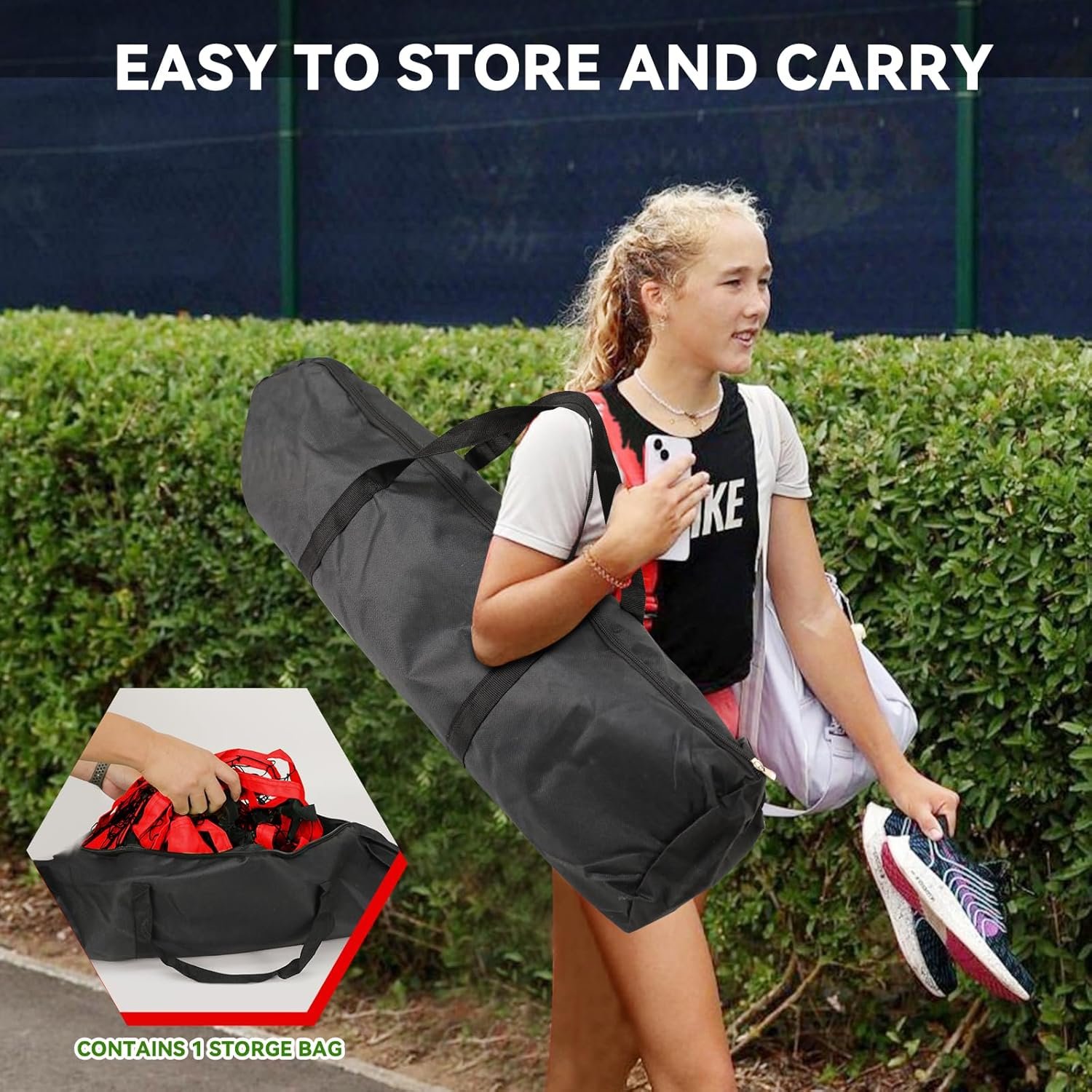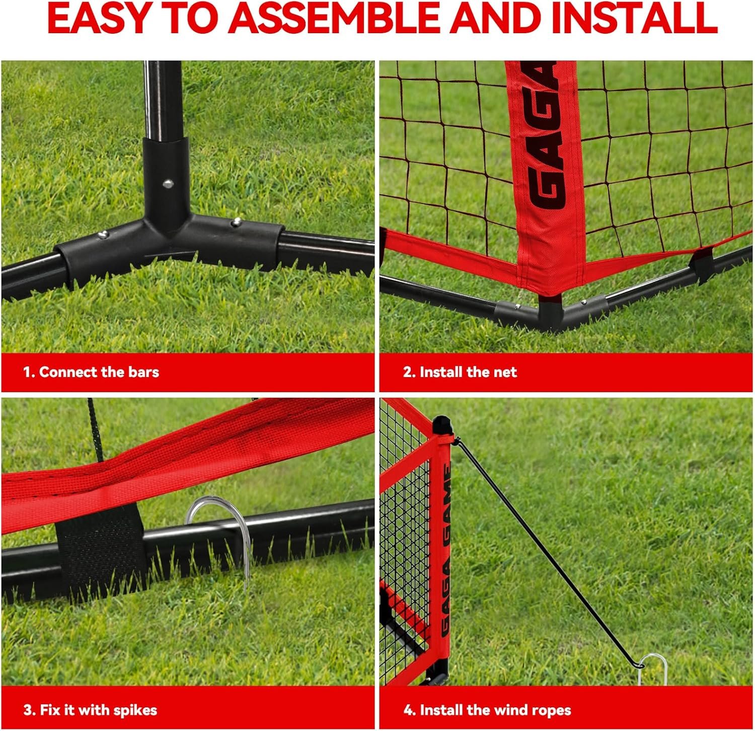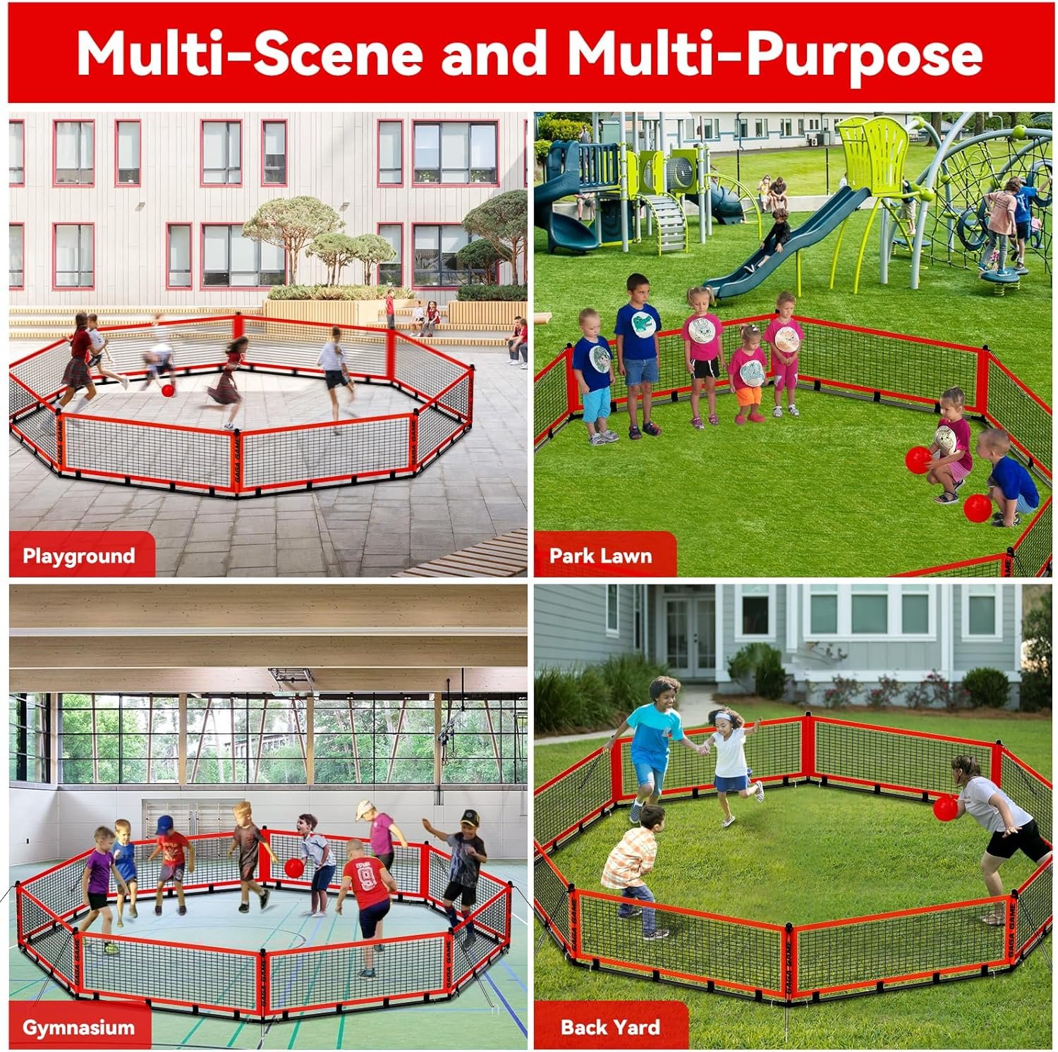 The portable gaga ball pit is made from durable, wear-resistant mesh and 600D Oxford fabric, ensuring longevity. It features multiple fixing solutions, including wind ropes and ground spikes, for enhanced stability. Easy to install and lightweight, it assembles in five minutes and comes with a carry bag for convenient storage. The pit’s entrance is designed for easy access while preventing balls from escaping. Suitable for all ages, it promotes teamwork and agility, making it ideal for outdoor events, camping, and gatherings. The set includes two balls for immediate play.