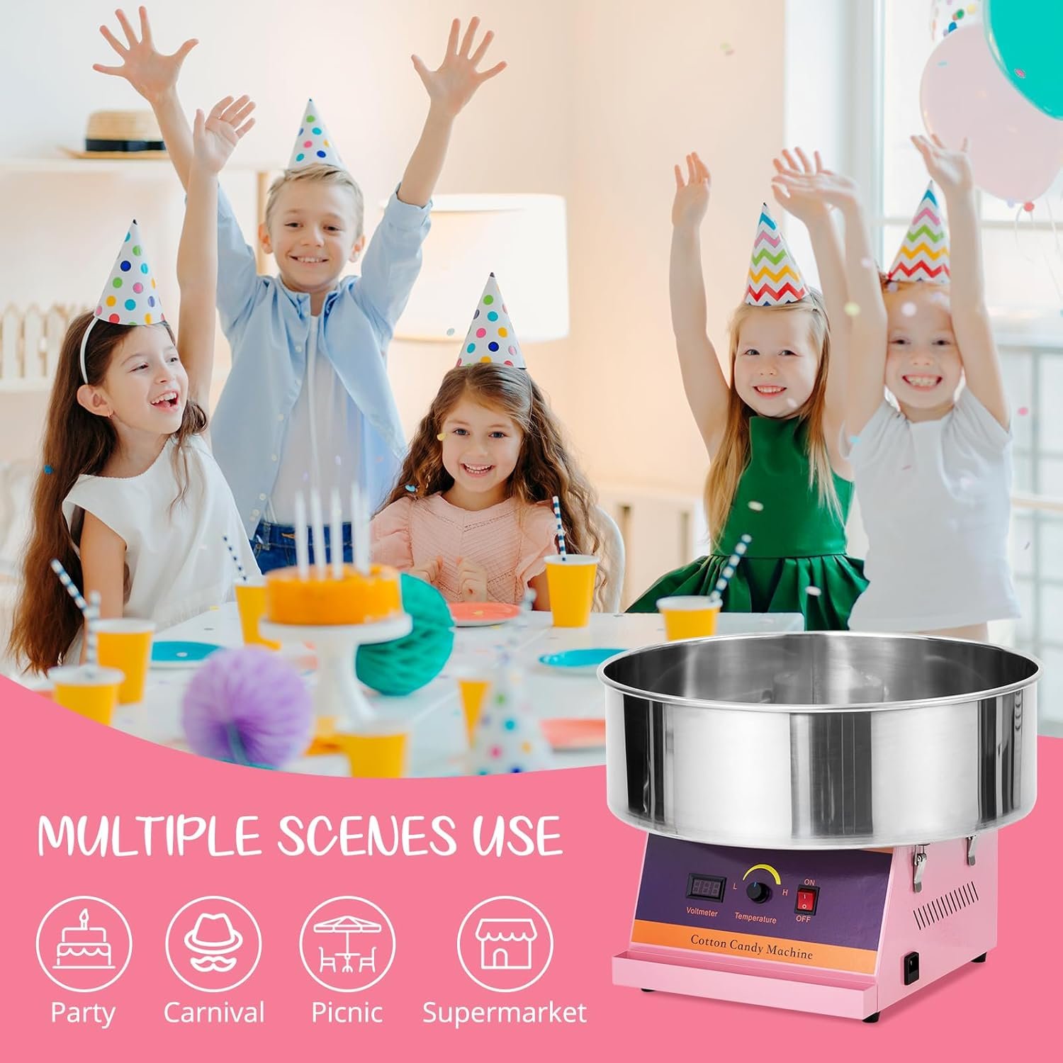 The GAOMON cotton candy maker features a powerful 1000W motor, producing about six cotton candies per minute and operating for up to an hour. Its rubber feet ensure stability, while the stainless steel construction allows for easy cleaning. Suitable for various sugars, this machine is perfect for parties and events. Designed for durability, it includes a user-friendly operation and a free sugar scoop. With a compact size and reliable design, it’s ideal for both small gatherings and large events, adding joy and fun to any occasion. Priced at $119.99, it boasts a customer rating of 3.9 out of 5 stars.