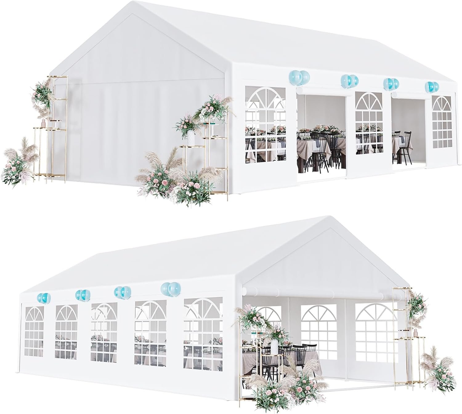 GARVEE introduces its heavy-duty party tent, ideal for various outdoor activities like picnics, camping, and trade shows. Constructed with a strong, rust-resistant steel frame, the tent supports stability with 1.5-inch diameter tubes. It features removable side walls, a zippered entrance, and PVC windows for ventilation. The waterproof polyester fabric is easy to clean, and a portable carry bag simplifies transportation. This spacious tent enhances event atmospheres, making it perfect for gatherings while providing shade and protection from the elements.