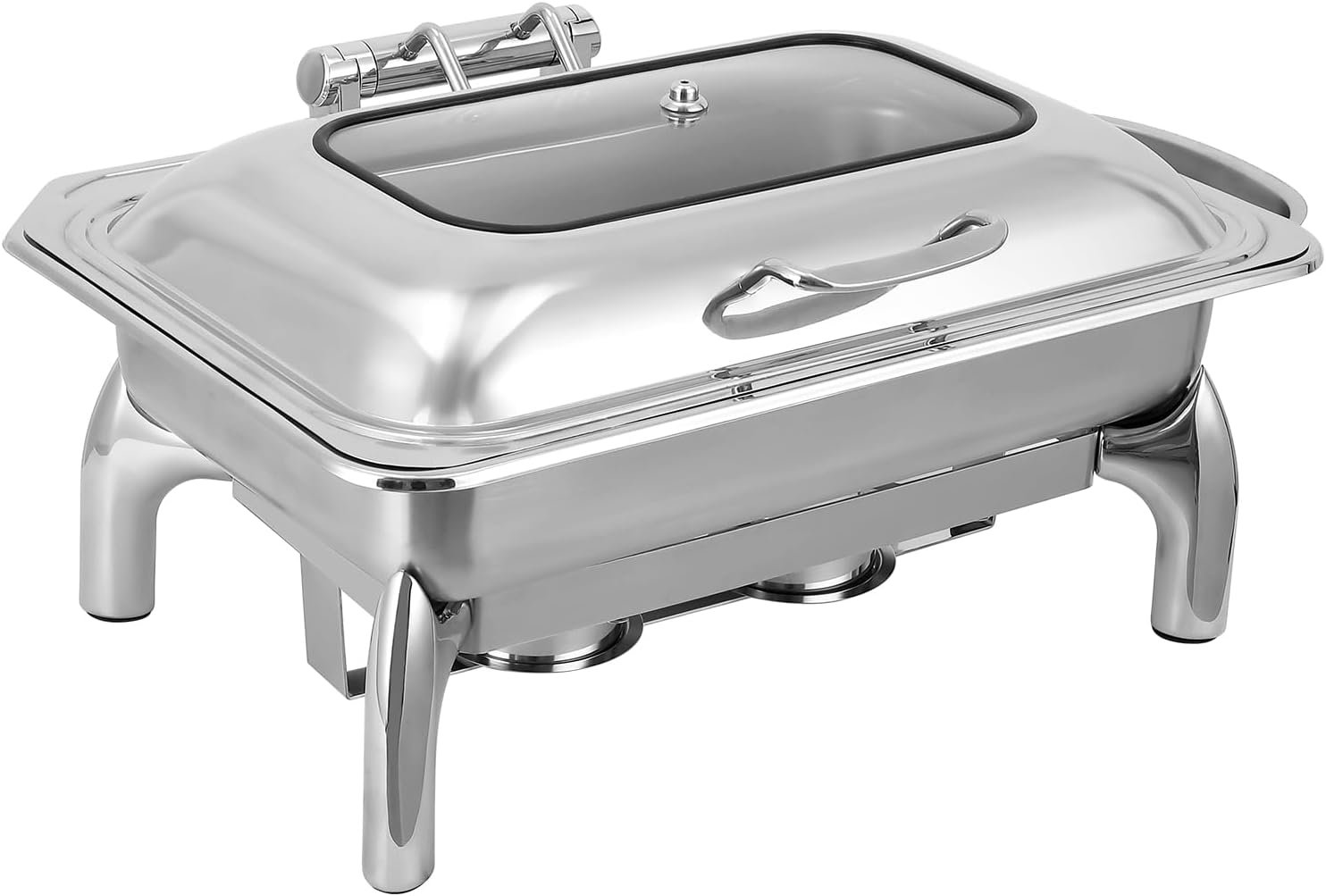 GarveeHome Chafing Dish Buffet Set, 9 Qt Stainless Steel Flip Cover Chafer with Viewing Lid & Removable Base Buffet Servers and Warmers Set Warming Tray for Wedding, Parties, Banquet, Catering Events
