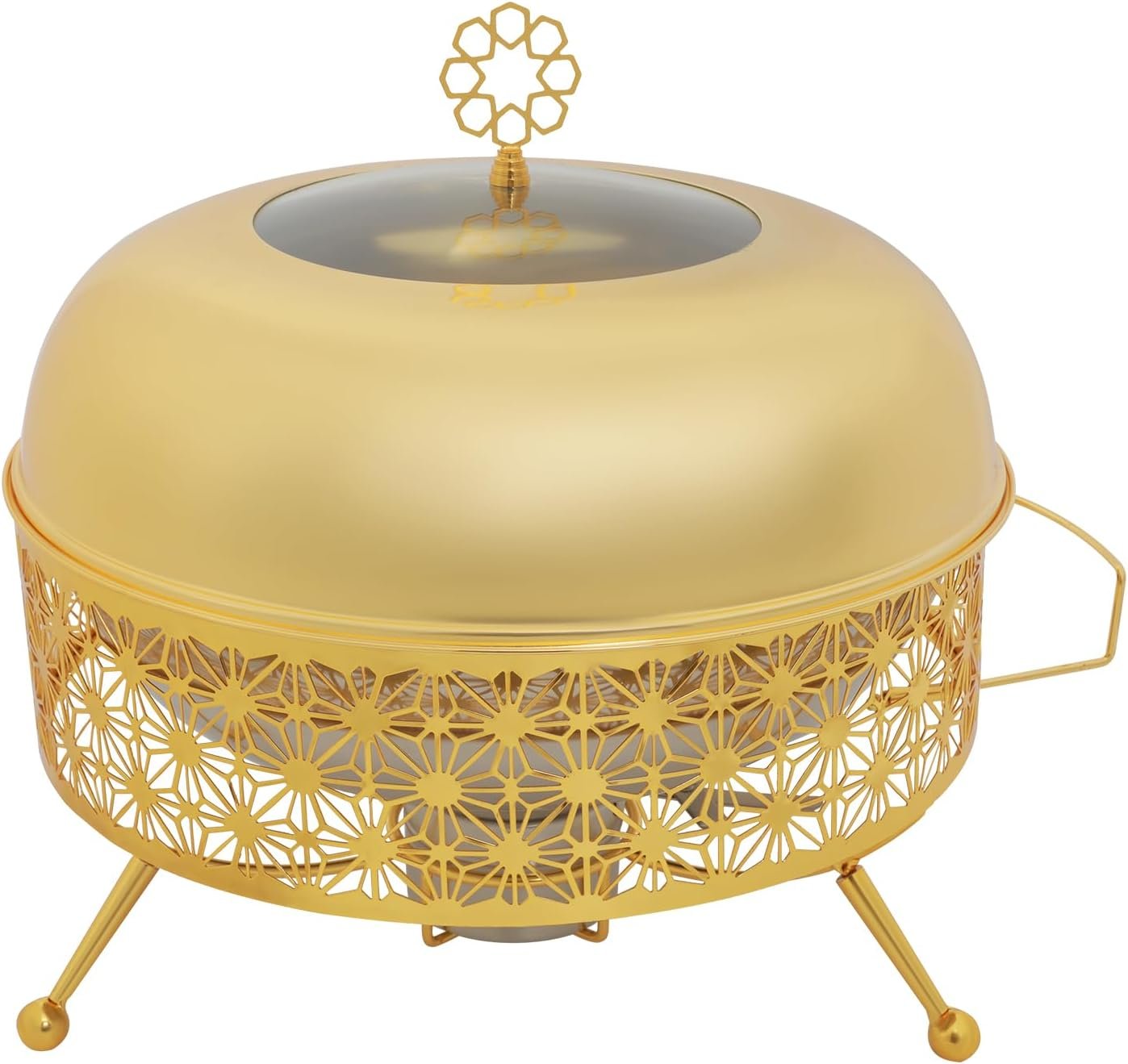 The 2.11-gallon stainless steel food pan is ideal for serving at parties and events, featuring a clear lid for easy viewing and a lid hanger for convenient storage. Its sturdy frame ensures stability while allowing ventilation. With premium material and a water-plating process, it resists high temperatures and rust. The product uses solid alcohol (not included) for energy-efficient heating, making it suitable for indoor and outdoor use. Designed for user-friendliness, it includes a handle for mobility and a rotatable lid for fire control. Perfect for buffets, weddings, and family gatherings, it combines practicality with aesthetic appeal.