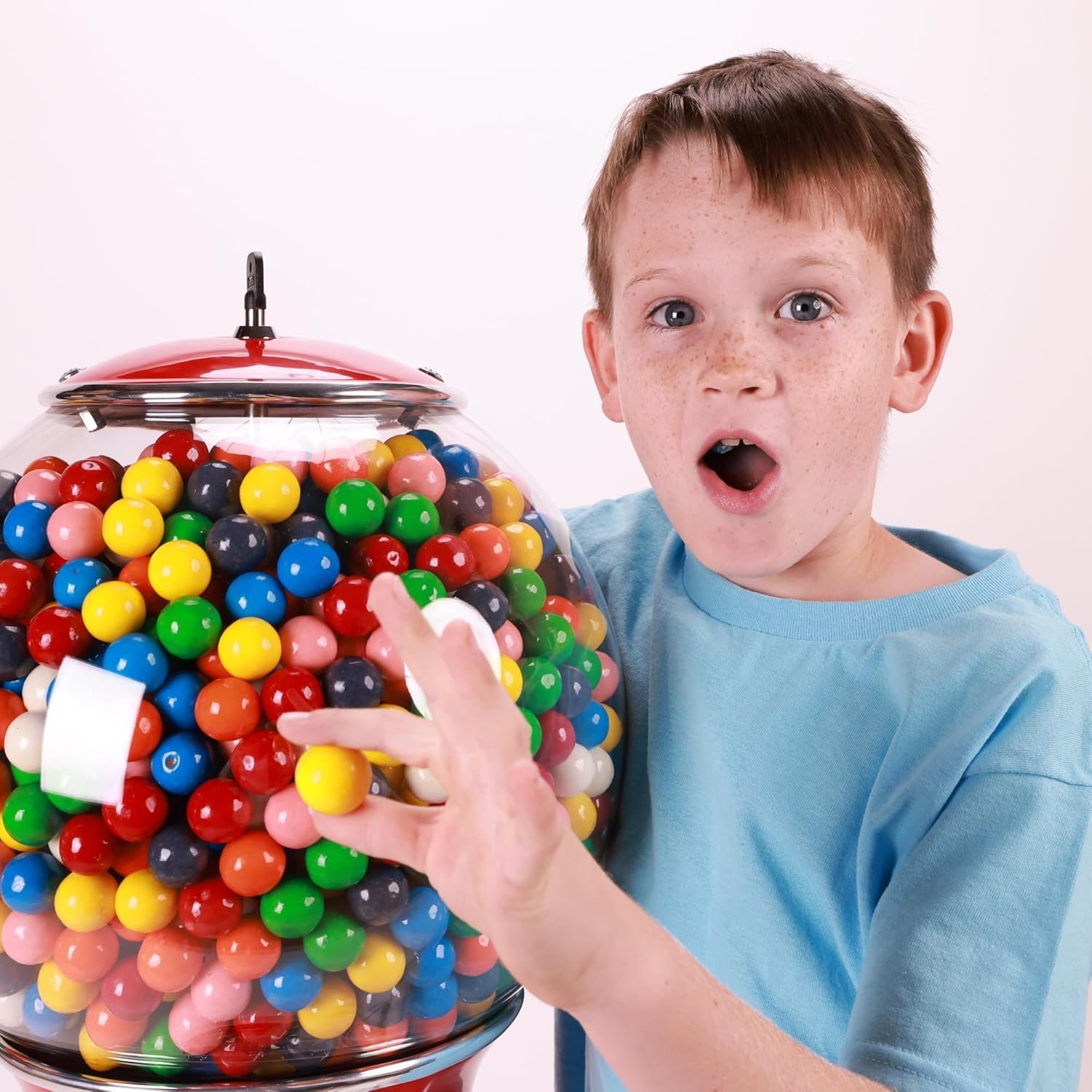 Global Gumball’s large vending machine stands 4 feet tall with a sturdy fiberglass body, holding 1550 pcs of 1-inch gumballs. It features a 25 cent coin mechanism, optionally upgradeable, and can include neon lighting for added appeal. Designed for rec rooms, amusement centers, and arcades, this gumball machine provides an engaging experience for both kids and adults, making it a smart business investment. The spiral feeding mechanism ensures a fun visual as gumballs travel to the dispensing opening. Note: It cannot dispense items larger than 1 inch.