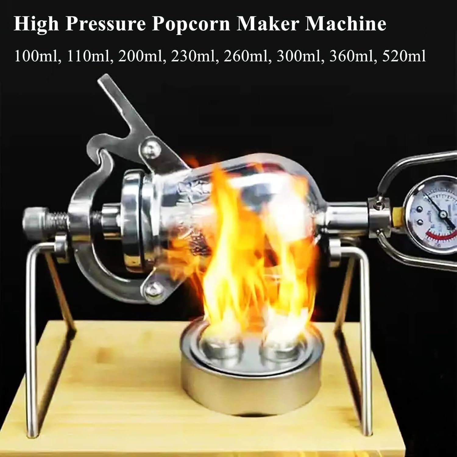 Hand Popcorn Machine, High Pressure Popcorn Maker, Chinese Traditional Old-Fashioned Popcorn Poppers, Stainless Steel Mini Popcorn Cannon Popcorn Pot(520ML)