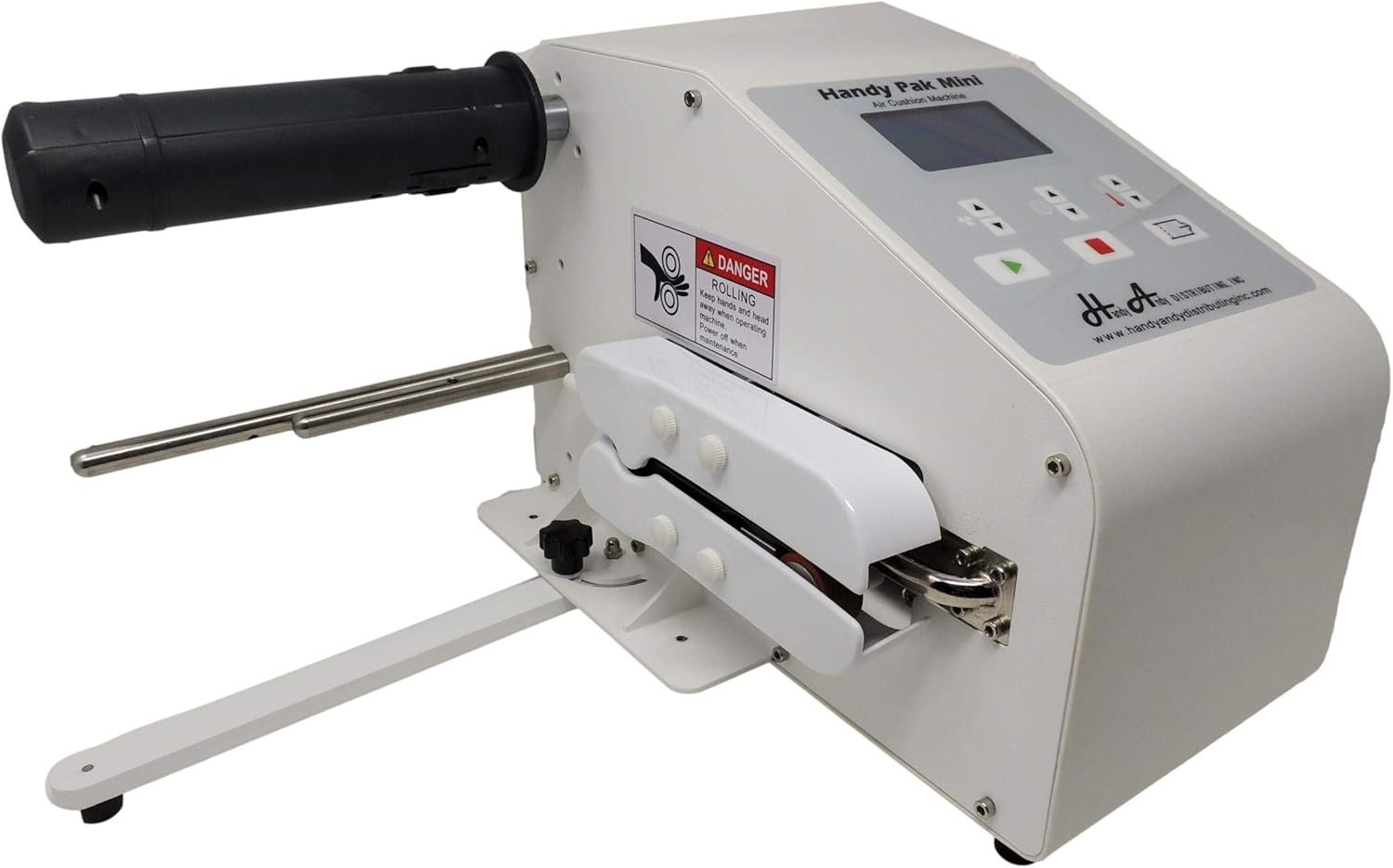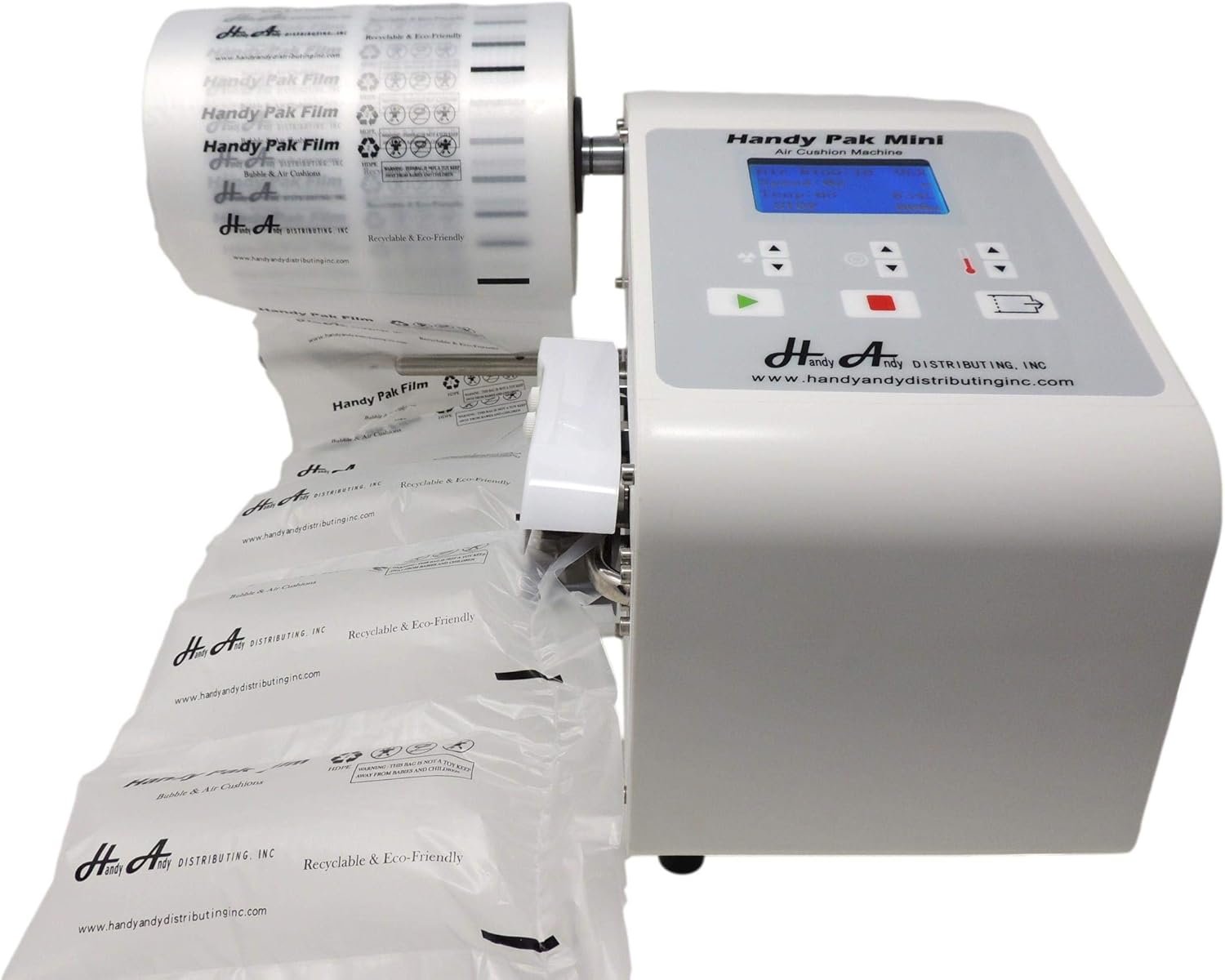The Handy Pak Mini is a compact and efficient machine designed for creating on-demand bubble cushion, air cushions, and air pillows. Suitable for both small and large businesses, it saves space and cuts costs by eliminating the need for bulky packing materials. With adjustable temperatures and fan speeds, it offers versatility and ease of use. Its lightweight output reduces shipping costs, while durable construction ensures reliability and longevity. The machine operates at adjustable speeds of up to 12 meters per minute, making it faster than competitors, and is cost-effective with affordable maintenance and replacement films.