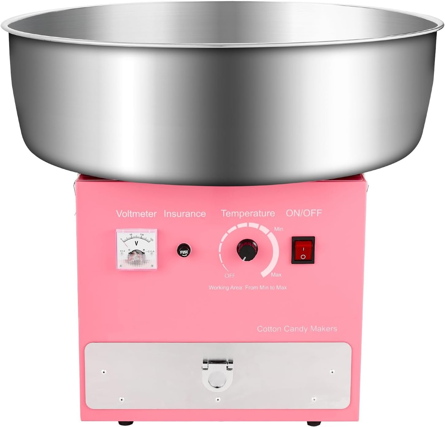 The Happybuy cotton candy machine weighs 16.53 lbs and measures 20.47×20.47×17.59 inches. It operates at 1000W and can produce 6 cotton candy cones per minute with a 3.7 oz bowl capacity. User-friendly, it requires minimal setup and includes a candy box for storage and an easy-to-use sugar scoop. The stainless-steel bowl ensures durability, while continuous operation for an hour meets high-output demands. It supports various sugars and features precise temperature control, allowing users to adjust from 244.9°F to 439.2°F for experimentation. Its compact design is ideal for parties and events.