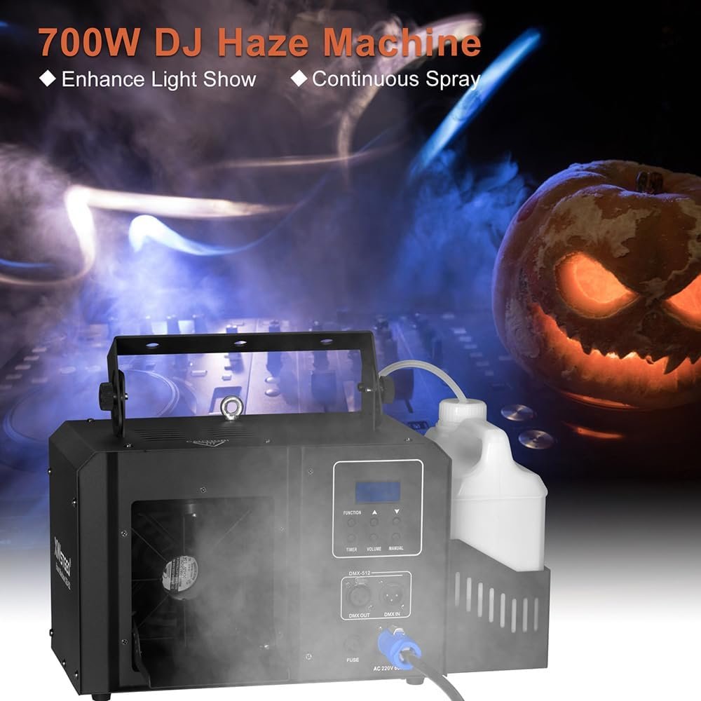 The 700W Continuous Fog Machine features advanced heating technology, preheating in just 1 minute and generating around 8000 CFM of non-toxic fog. It offers easy operation via a timer, wireless remote, or DMX console to adjust fog output and fan speed. With a low-noise fan for quiet operation, this portable and compact machine is perfect for enhancing light shows at stages, clubs, Halloween events, and parties.