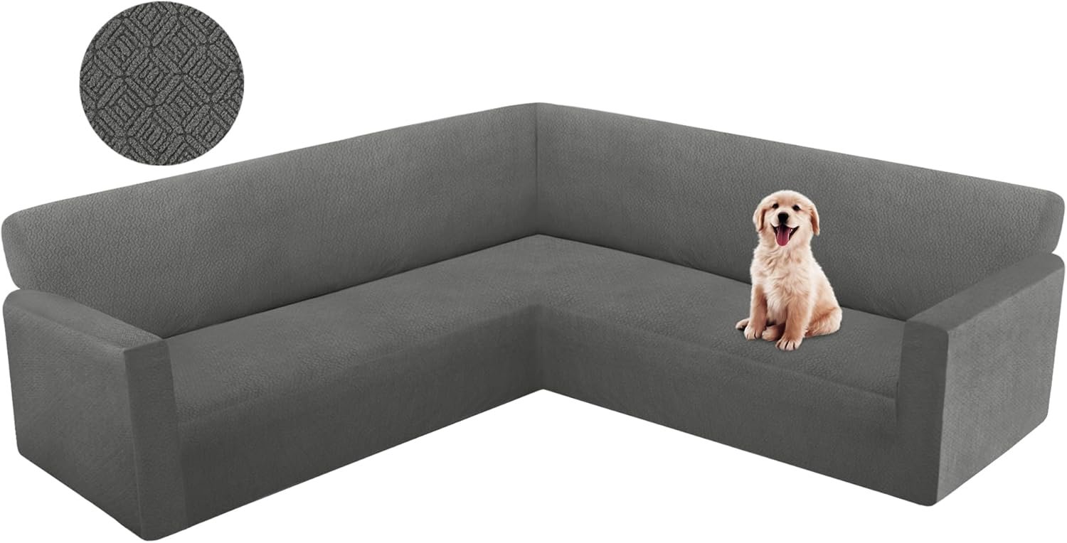 HDCAXKJ Corner Sectional Couch Cover Stretch L Shape Sofa Cover Thick Jacquard Sofa Slipcover Non Slip U Shaped Couch Cover for Sectional Sofa Pets Living Room Furniture Protector (Dark Gray, Large)