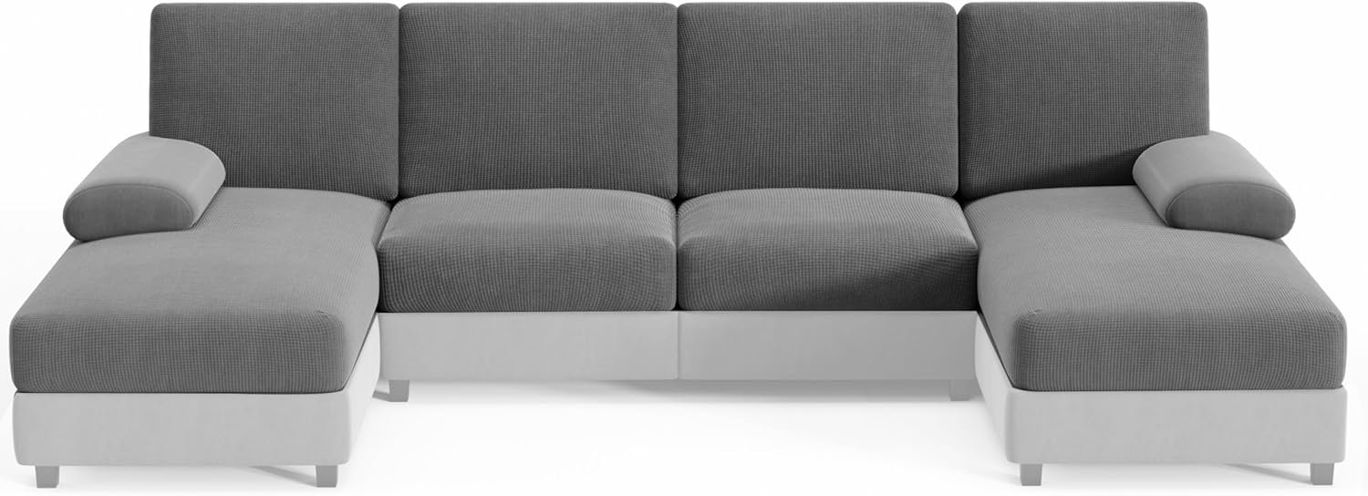 Upgrade your living space with the Hudson Comfort U-shaped sectional couch covers. Made from a super stretchable spandex fabric, the set includes backrest, seat, and chaise covers. Protect your furniture from wear and tear while enhancing your home decor effortlessly!