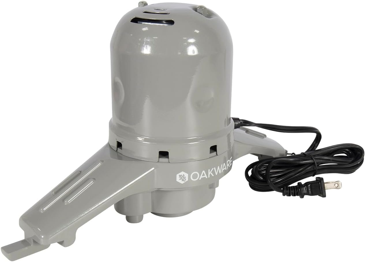 The Oakware motor offers an economical solution for easy ice cream making. Enhanced after years of repairing White Mountain Freezers, it features bronze bushings to minimize friction and a new motor designed with planetary gears, resulting in a sound similar to a blender. It fits 4 qt. and 6 qt. freezers from both Immergood and White Mountain. Key improvements include double action gearing, a one-year warranty, and a powerful 1.1 AMP motor running at 12,000 RPM.