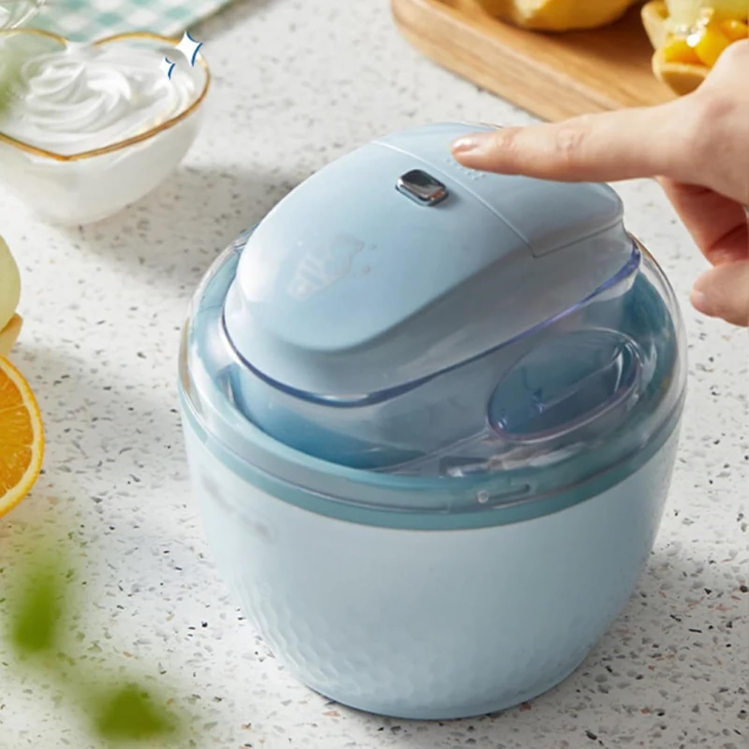 The ice cream machine is an ideal gift for cooking enthusiasts. It features a USB power supply, 500ml tank capacity, and one-button operation, weighing about 950g. Perfect for family activities, it makes various treats like ice cream, frozen yogurt, and slushies. Its simple operation involves freezing the bowl overnight, adding ingredients, and starting the churning process for quick desserts. Note size variations and possible color differences in product photos. For inquiries, customer support is readily available.