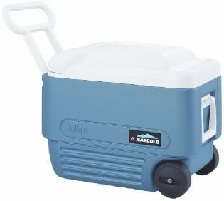 The Igloo MaxCold Roller Cooler (40 qt) in blue is designed for efficient cooling and portability. It features a durable construction, insulated body, and a telescoping handle, making it easy to transport. With ample storage capacity, it can hold a variety of items, making it ideal for picnics, camping, and outdoor events. The cooler also includes built-in cup holders and is equipped with wheels for effortless maneuvering. Its sleek design and functionality make it a perfect choice for those seeking convenience and performance in a cooler.