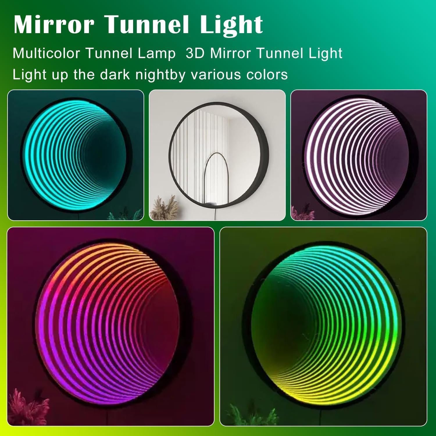 The Infinity Mirror Tunnel Light resembles a regular mirror but transforms into a vibrant RGB color portal when lit, creating stunning illusions. Ideal for decorating various spaces like bedrooms, schools, and hallways, it features a geometric design and offers 358 lighting effects, controllable via remote or an app. Available in three sizes, it easily mounts on walls and incorporates a power supply for straightforward installation. This versatile light enhances any occasion, from romantic dinners to lively parties, adding energy and creativity to the environment while doubling as a mirror when off.