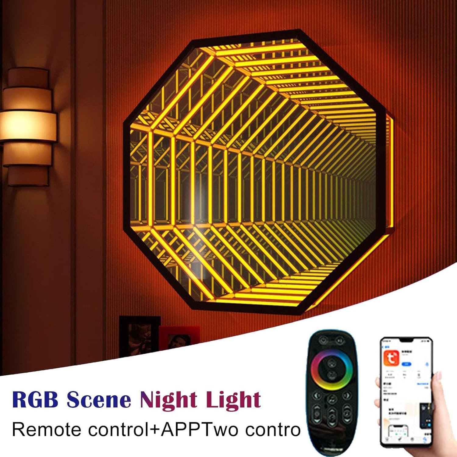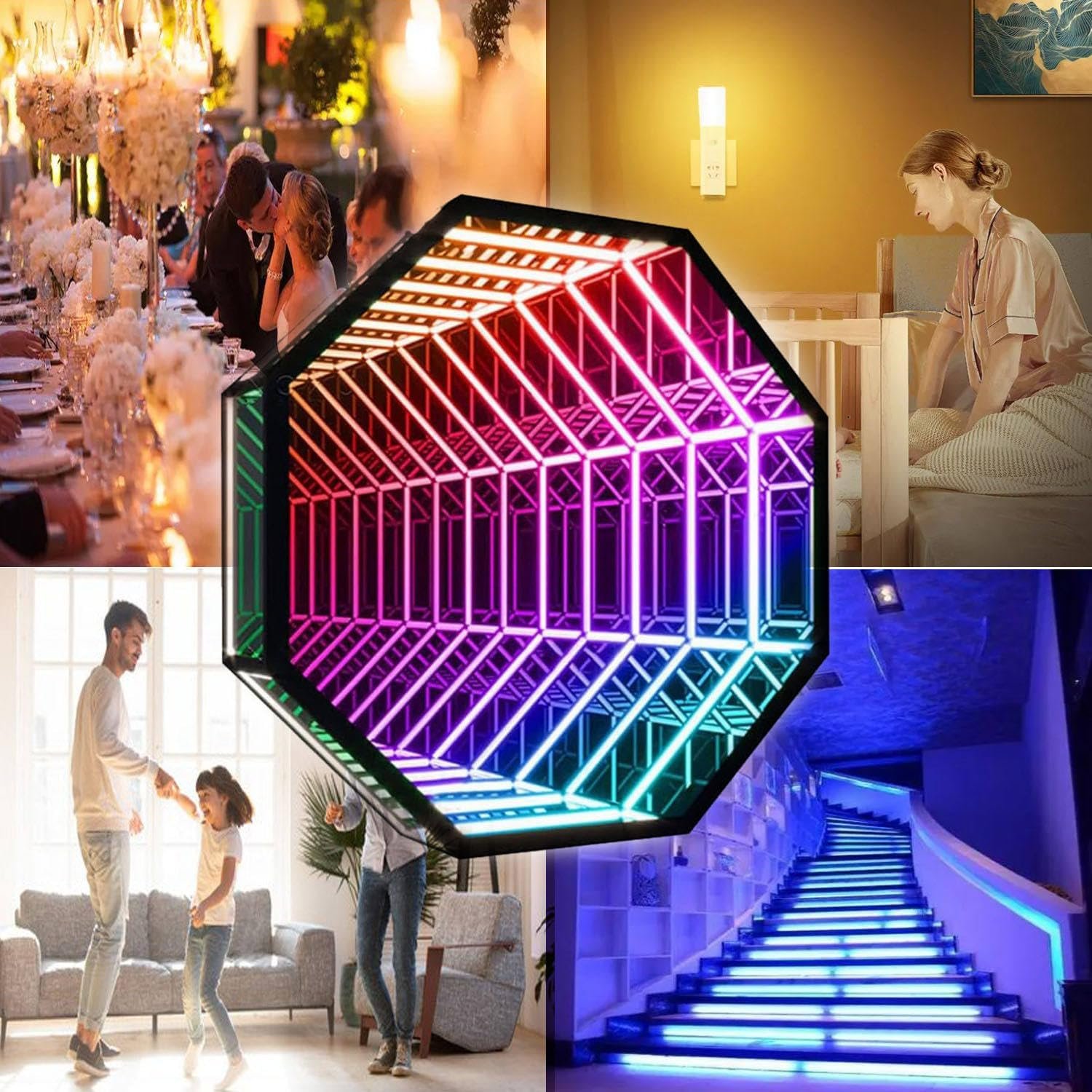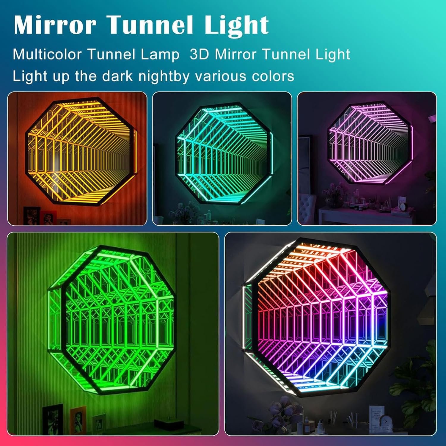 The Infinity Mirror Tunnel Light offers a mesmerizing visual effect with its endless tunnel of light and 358 adjustable RGB color effects. Easily controlled via a remote or mobile app, it enhances any space while functioning as a standard mirror when off. Available in multiple sizes (30, 50, 70 cm), it’s perfect for various settings like bedrooms, living rooms, or corridors. Installation is simple, requiring just 10-15 minutes. Ideal for personalized home decor, it adds a touch of magic to any environment. The package includes the mirror light and a remote control.