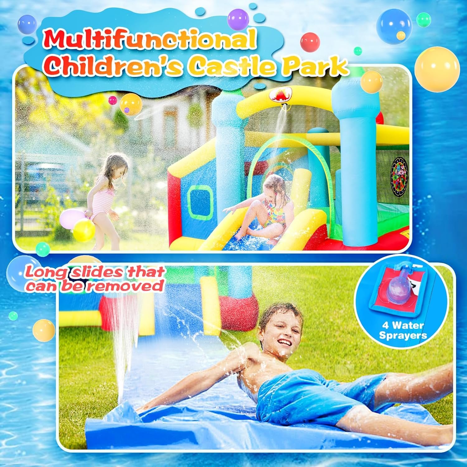 Inflatable Bounce House and Extended Long Water Slide, Jumping Castle Slide with Blower, Kids Bouncer with Ball Pit, Dart Target Game