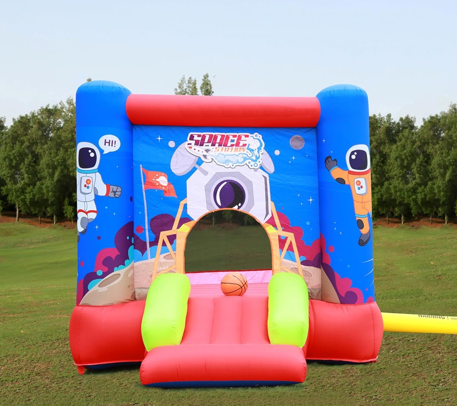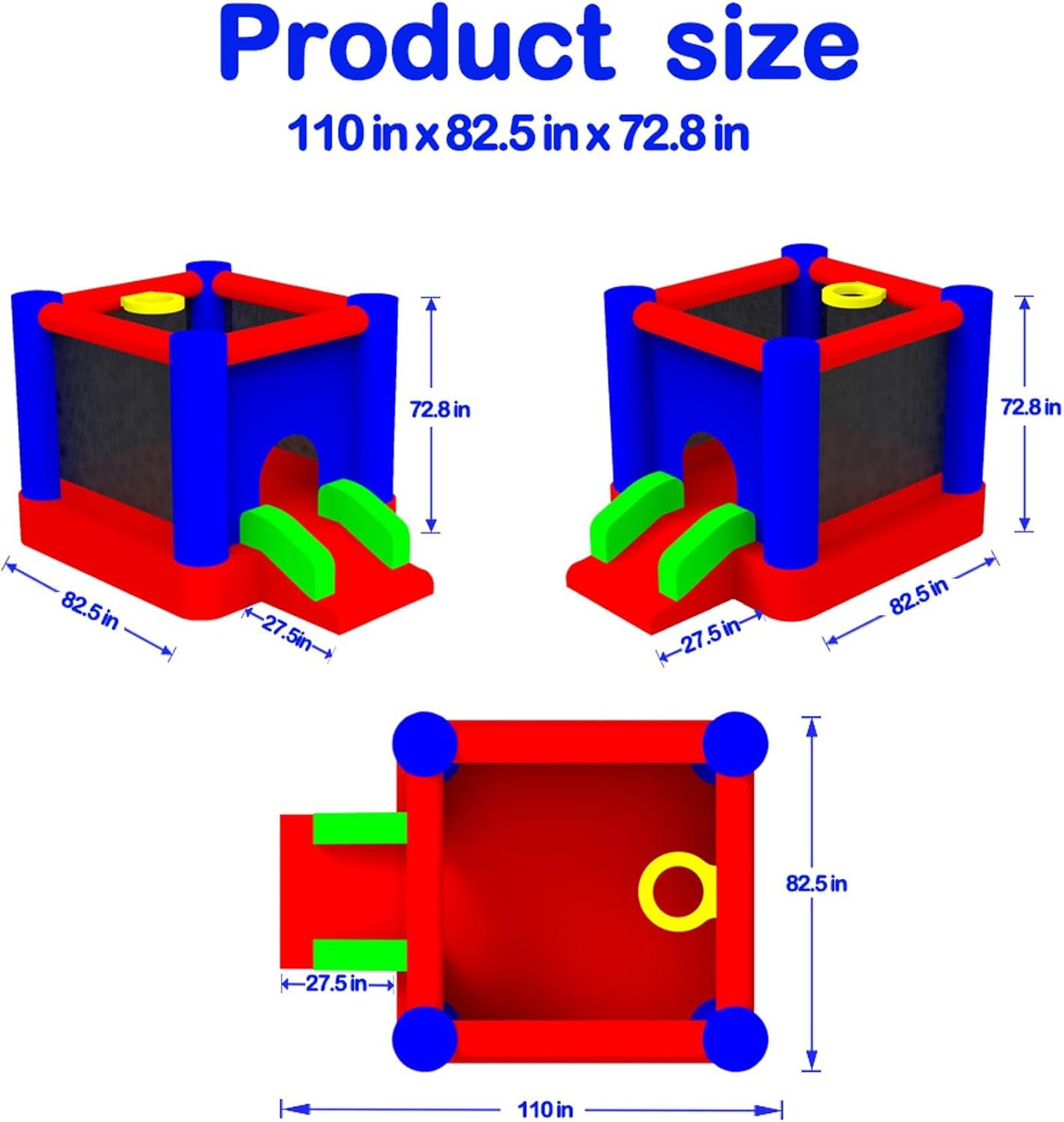 Customers find this inflatable bouncer to be a high-quality bounce house that’s easy to set up and break down, taking about 5 minutes to inflate. They appreciate its durability, with one customer noting it held up well to an active 3-year-old, and its spacious design that accommodates multiple children. Customers find it fun for kids, with one mentioning it’s great for both indoor and outdoor use, and consider it a worthy purchase for the price. The bouncer fits well inside houses, though opinions about the included balls are mixed.