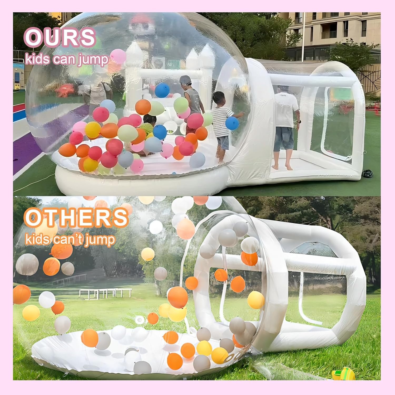 🎈【New Upgraded Version】:The new design inflatable bubble house features a bouncing bottom for kids to jump in. With a 360-degree view, it remains transparent when expanded. Perfect for parties, it adapts to weddings, birthdays, and outdoor activities, ensuring fun for all!