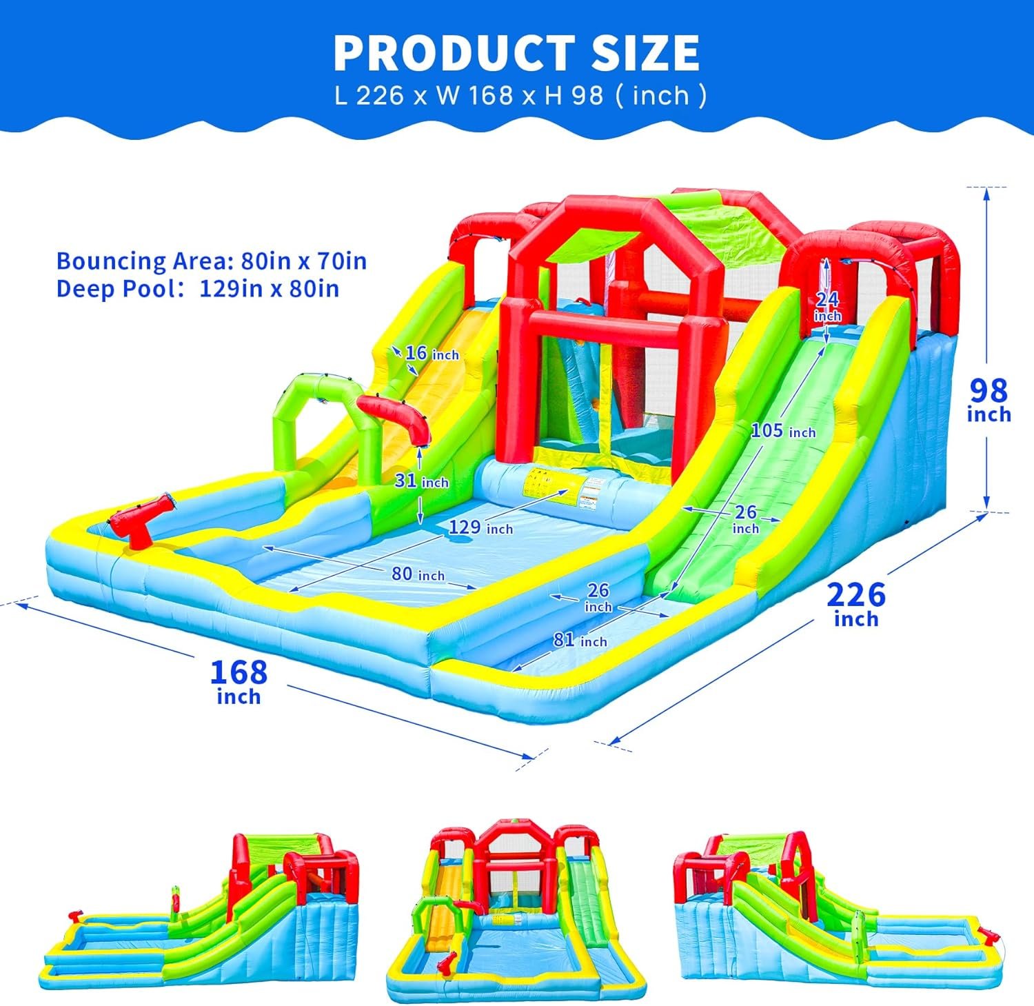 WELLFUNTIME Inflatable bounce house is a joy for friends to go wild together! Inspired by a vibrant dinosaur, our products combine safety and fun, creating a colorful world for children. With thrilling dual slides, splash pools, and quick setup, it promises endless adventure!