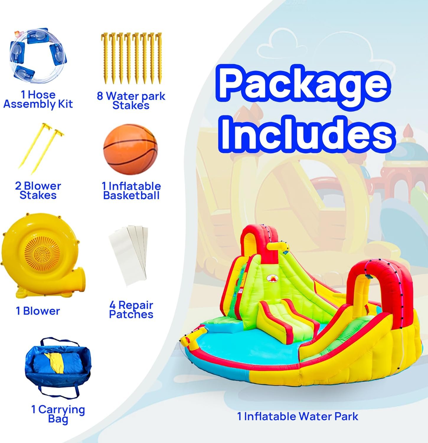 Wellfuntime offers a vibrant collection of inflatable bounce houses and water parks designed for fun and safety. Featuring a lively dinosaur logo, their products inspire imagination and adventure. Constructed from durable, eco-friendly materials, these bounce houses endure vigorous play. They include various entertaining features such as water slides, climbing walls, and basketball frames. Easy to assemble with an electric blower, these inflatables provide endless enjoyment for children, transforming backyards into joyful play spaces. Each package includes essential accessories like stakes, a carrying bag, and repair patches for hassle-free use. Join Wellfuntime for memorable adventures!