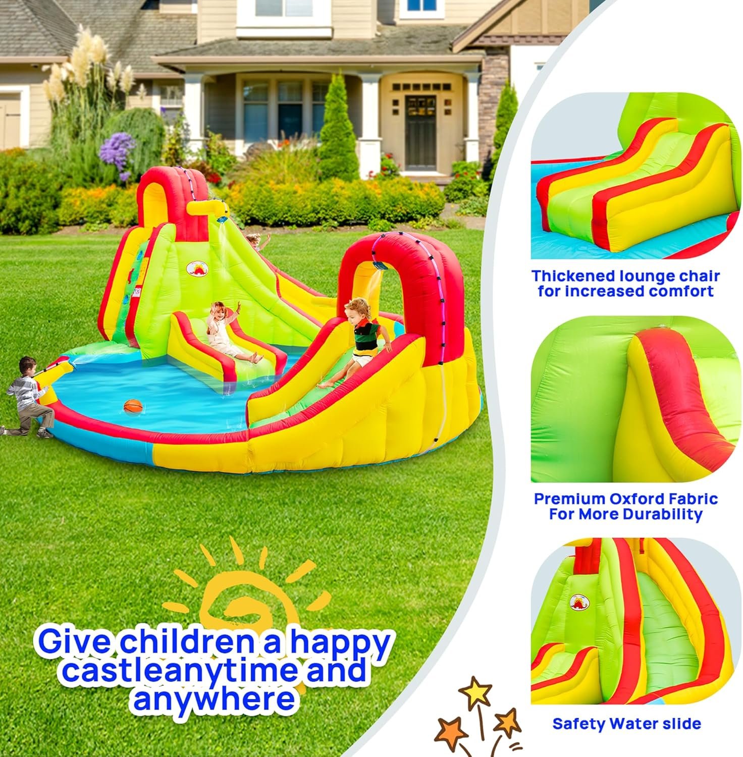 Customers find the inflatable bouncer fun and easy to set up for kids. They find it great for kids ages 6-12, and it keeps them happy and entertained. Many customers consider it a good value for the price, and consider it a great purchase for their family. The quality is good and sturdy, with no problems encountered. The size and capacity are also satisfactory. However, some customers dislike water retention and have mixed opinions on its durability.