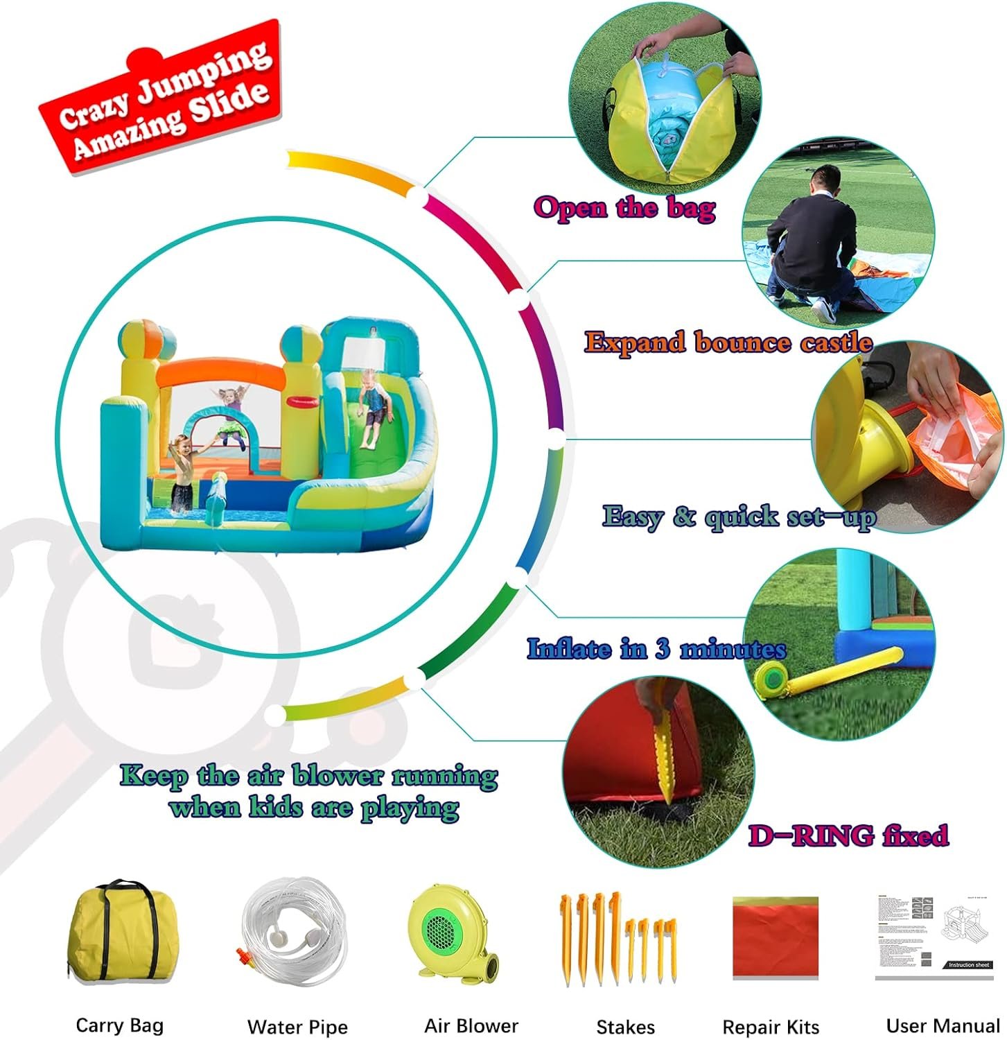 Customers find the inflatable bouncer fun for kids, providing hours of entertainment, and appreciate its perfect size with plenty of space. Moreover, the bounce house receives positive feedback for its quality and ease of setup. However, durability and value for money receive mixed reviews – while some find it very durable and worth the money, others report it tearing within the first few uses and consider it a waste of money. Additionally, water retention is a concern as there’s no easy way to drain it, and several customers report issues with holes developing in the product.