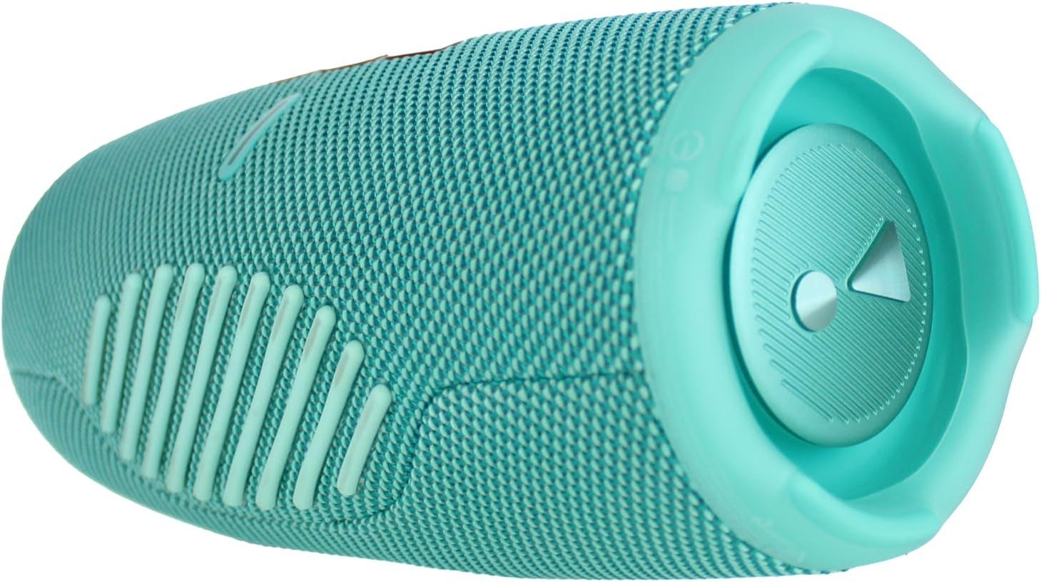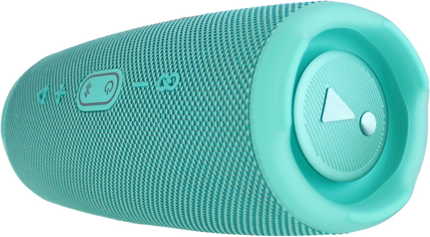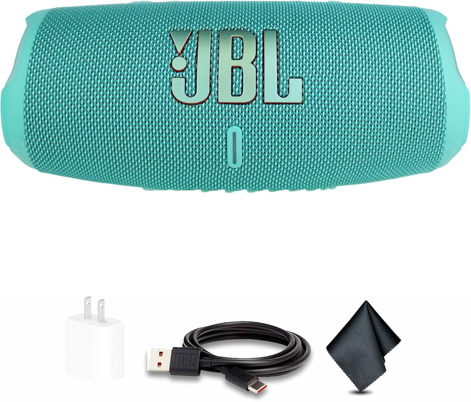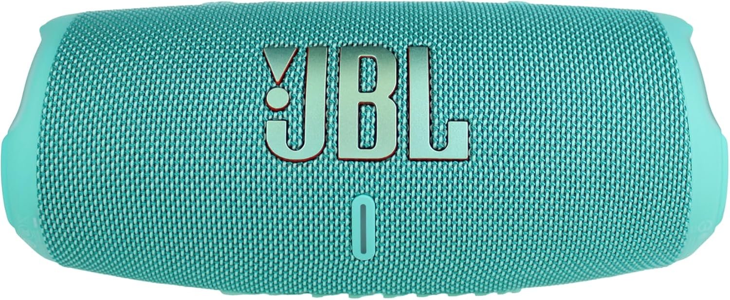 The Teal JBL Charge 5 Portable Bluetooth Speaker is a versatile audio device featuring a rechargeable battery that provides up to 20 hours of playtime. With an IP67 waterproof and dustproof rating, it’s perfect for outdoor use. The speaker delivers up to 40W of RMS power and includes dual passive radiators for enhanced bass. Designed for adventure, it allows wireless streaming via Bluetooth and can pair with up to two devices. The package includes a USB Type-C charging cable and a microfiber cloth, making it a convenient choice for on-the-go entertainment.