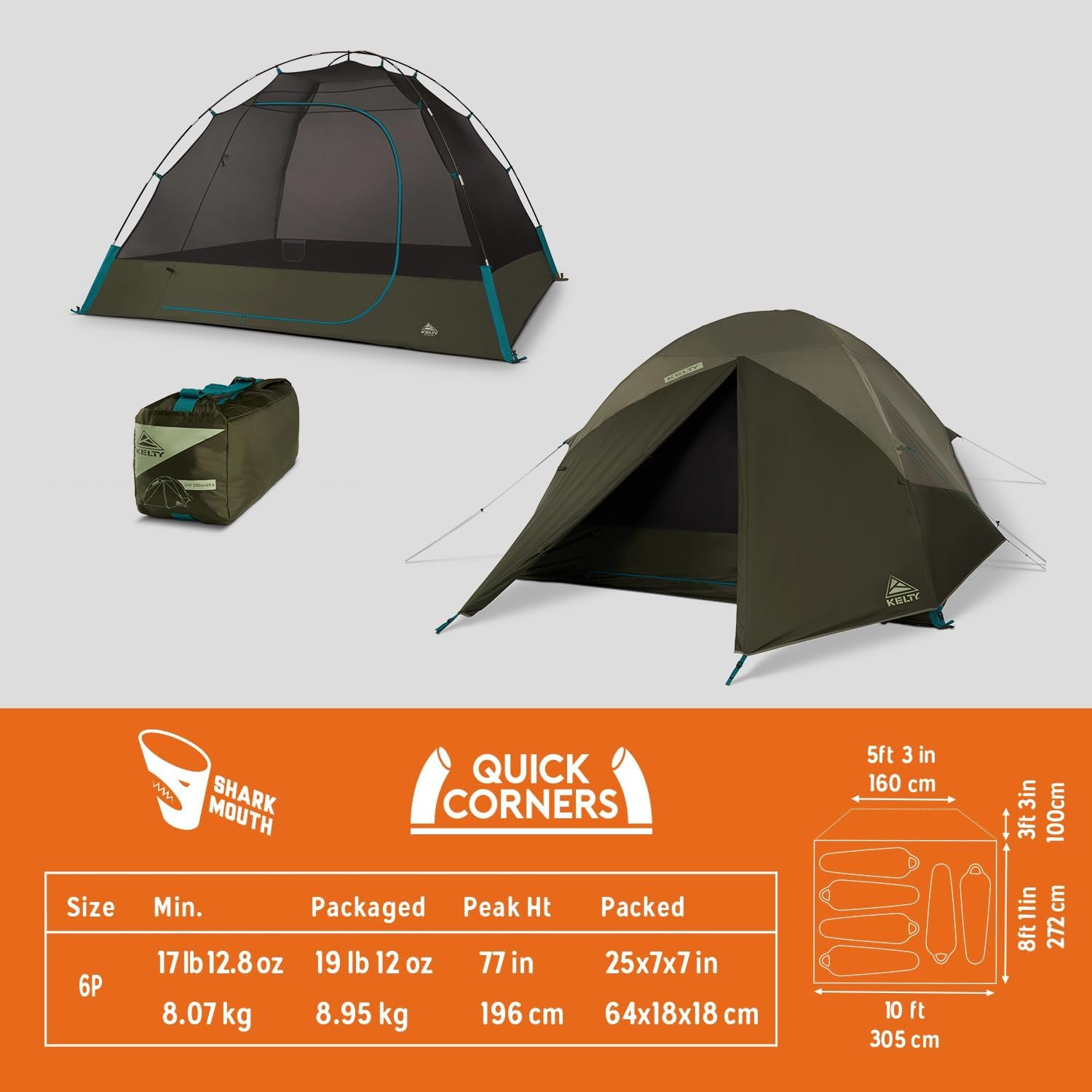 Kelty Daydreamer 4P + 6P Camping Tent, Blackout Fabric, Interior Light Diffusing Gear Loft, Standing Height, PFAS Free