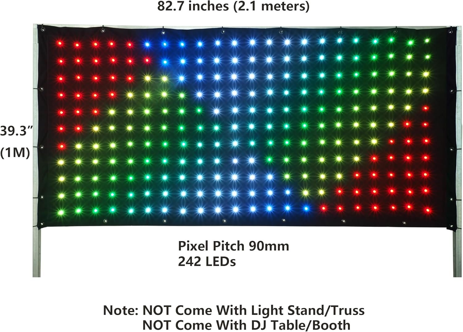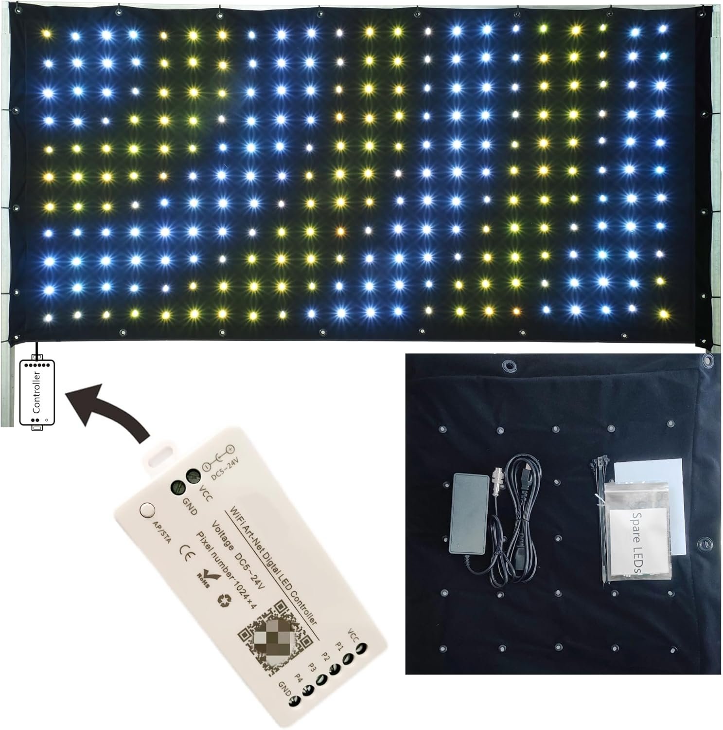 The KHXED LED Motion Drape Facade is a versatile lighting product perfect for DJs and events. It features RGB 3in1 LEDs (up to 242 pcs), customizable animations and graphics via a mobile app, and offers Art-Net compatibility with various software. Available in multiple sizes, the drape is lightweight and easy to transport, designed for quick setup. It includes a controller, power supply, spare LEDs, and video tutorials, but does not come with a light stand. Customer ratings average around 4.3 stars, reflecting satisfaction with its performance and features. Prices range from $159 to $269.
