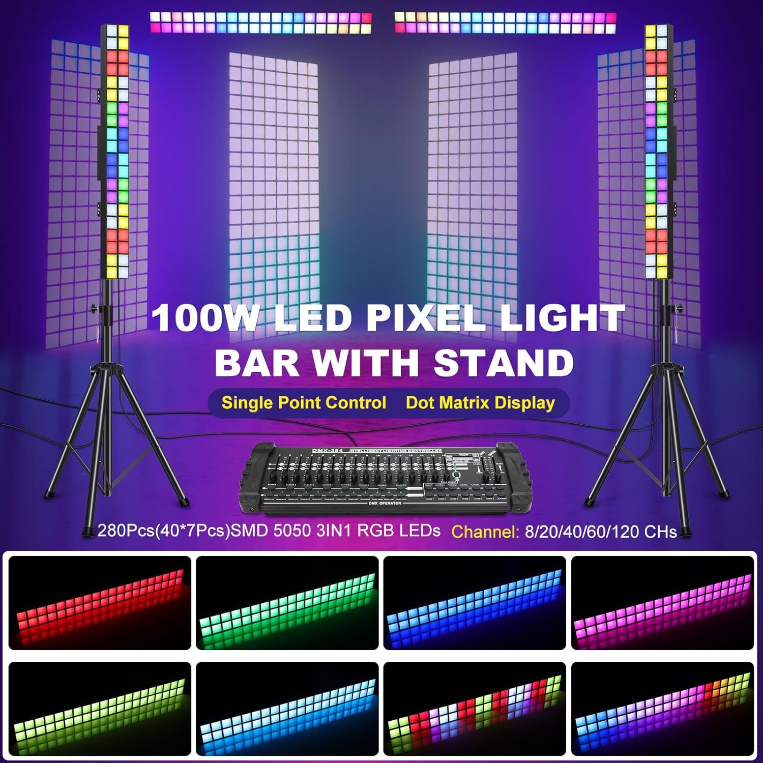 The ENDYSHOW 100W LED Pixel Light Bar features 20 RGB SMD LED pixel blocks, offering over 16.7 million color combinations. It includes a foldable tripod stand for easy setup and can be controlled via DMX in multiple modes, making it suitable for various events like parties and weddings. The lightweight, aluminum design ensures effective heat dissipation and durability. With high ratings (4.3 to 5 stars), this versatile light bar is ideal for DJs, clubs, theaters, and more, providing vibrant lighting effects for any occasion. Priced at $164.99, it is a reliable choice for creative lighting solutions.