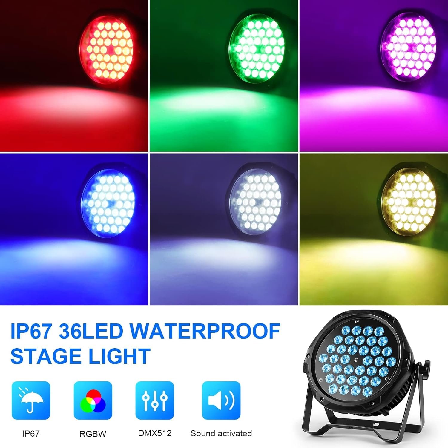LED Stage Lights IP67 Waterproof Par Lights, 36LED 180W RGB High Power HOLDLAMP Outdoor Uplights for Events with DMX Control Sound Activated for Party Bar Church DJ Wedding Live Show