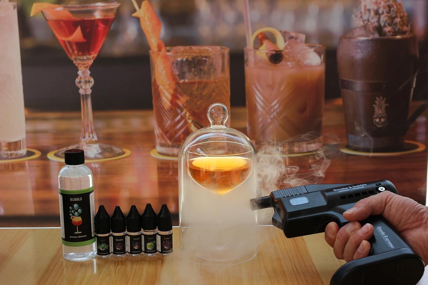 The Smoke Bubble Gun is an innovative tool for bartenders and chefs that enhances drinks and dishes with natural aromas. Featuring interchangeable fragrance boxes like citrus and vanilla, it offers a unique sensory experience for cocktails and meals. Its ergonomic, user-friendly design includes one-button operation and a rechargeable battery, making it suitable for bars and home kitchens alike. This device creates impressive smoke and flavor bubbles without open flames, making it ideal for a variety of cooking and mixing applications. It is popular in top bars and Michelin-starred restaurants, setting a new standard in gastronomy.