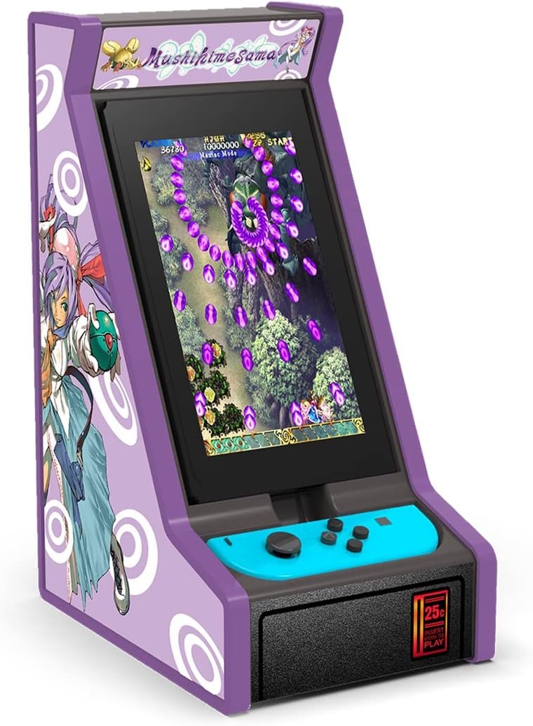 The Mushihimesama Switch Mini Arcade (Import) is a compact version of the popular bullet-hell shooter game, originally developed by Cave. Players control a character navigating through beautifully designed levels while dodging intricate patterns of projectiles. The game features various modes, including a high-score challenge and local co-op play. With its retro-inspired graphics and engaging gameplay, it’s ideal for both newcomers and seasoned fans of the genre. The import version emphasizes its unique arcade experience, making it a must-have for enthusiasts of classic shooters on the Nintendo Switch.