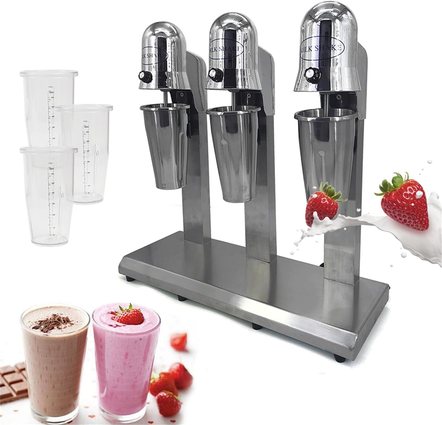 Milkshake Machine, Electric Milkshake Maker Machine Commercial 3 Head Milkshake Ice Cream Mixer Stainless Steel Drink Mixer with 3 Drawing Cup 110V 60Hz 18000RMP