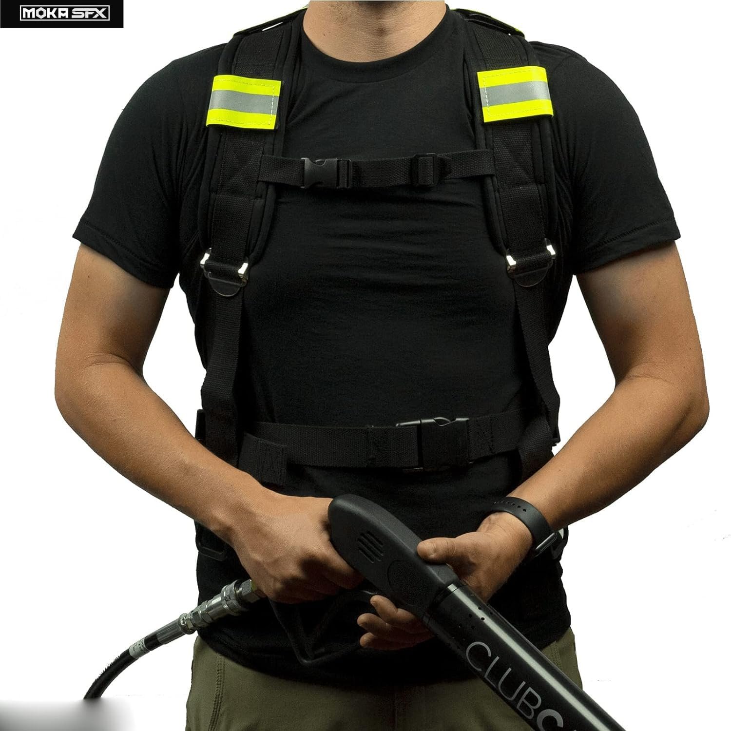 The CO2 backpack is designed to securely carry a 20KG CO2 siphon tank for easy transport of your CO2 cryo machine. Weighing only 1.5kg, with a maximum capacity of 50kg, it features an advanced back-plate and safety straps for comfort. The adjustable strap ensures the tank remains stable, while the metal base reduces weight and enhances mobility. A green reflective strip alerts bystanders to maintain distance for safety.