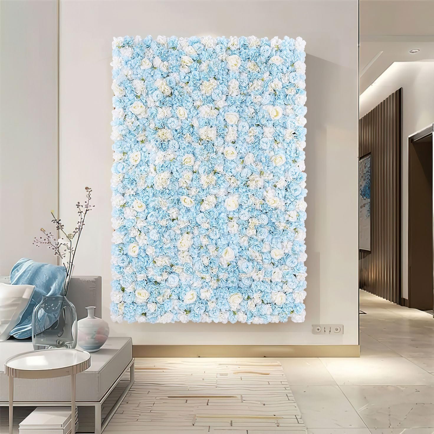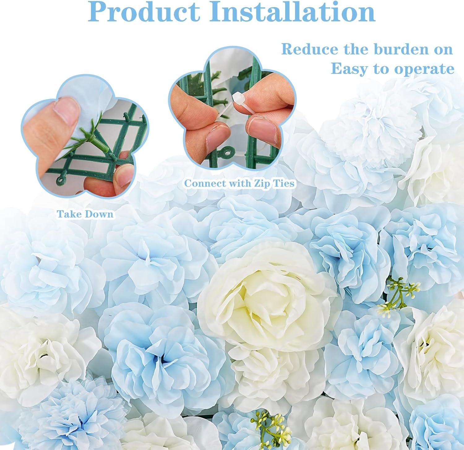 The Artificial Flower Backdrop includes 24 panels (15×15 inches each) made from silk and plastic. It comes with 200 zip ties, 2 hot-melt adhesives, and 24 hooks for easy installation. The realistic hydrangea flowers create a chic display for various events, such as weddings, baby showers, and birthdays. This versatile backdrop can also serve as curtains or room dividers. The eco-friendly materials ensure a lifelike appearance, while pressed petals can be restored easily. It’s an elegant choice for enhancing special occasions and photography.