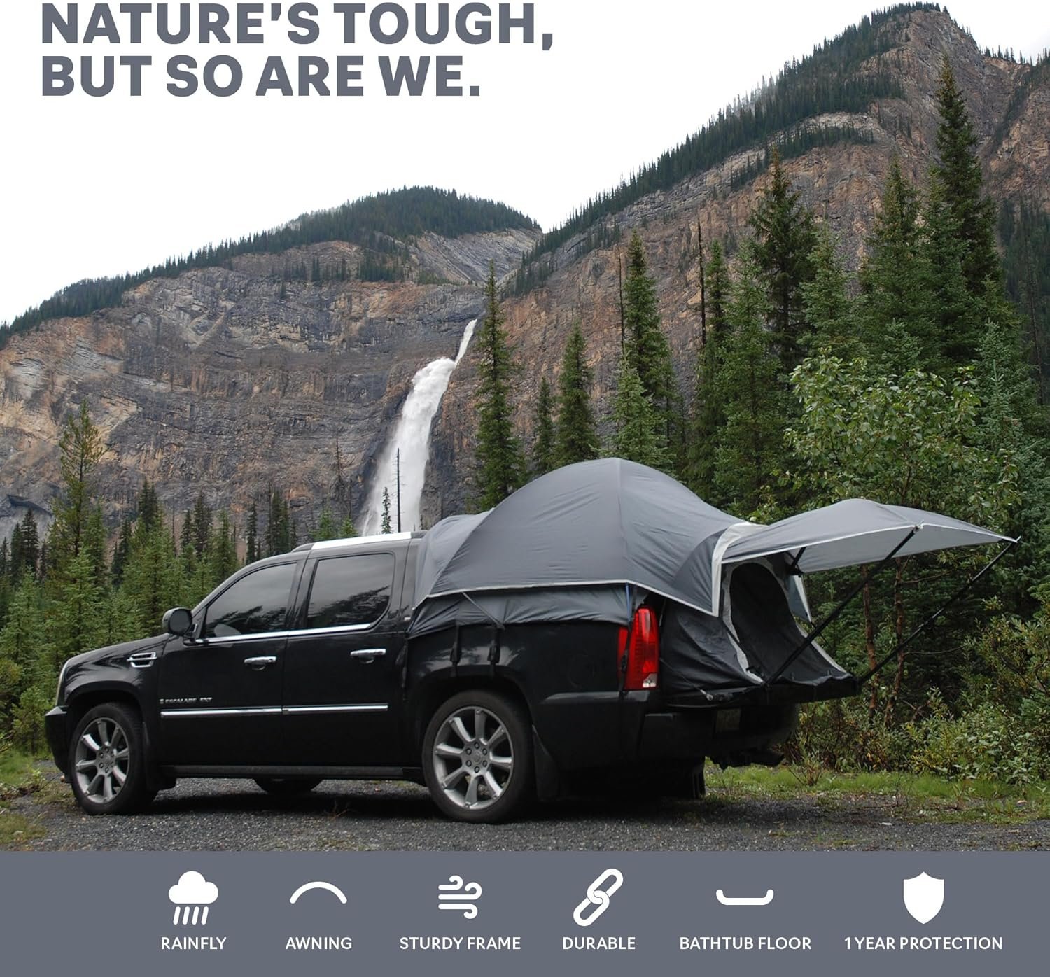 Napier’s Truck Tent transforms your Chevrolet Avalanche or Cadillac Escalade EXT truck bed into a cozy campsite, featuring weather-resistant fabrics for full protection from the elements. Setup is easy with a color-coded pole system that allows for assembly in under 15 minutes. Designed for comfort, it optimizes headroom and includes a spacious entry door with an optional awning for sun and rain protection. Ventilation is ensured with large windows, while durable materials guarantee longevity. With over 30 years of innovation, Napier is committed to delivering reliable outdoor solutions.