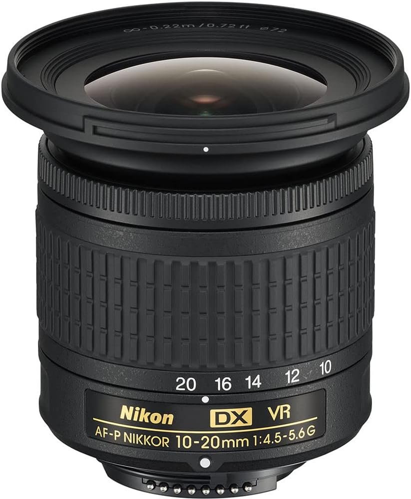 The Nikon AF-P DX NIKKOR 10-20mm f/4.5-5.6G VR Lens is a versatile wide-angle zoom designed for Nikon DX-format DSLRs, offering a 15-30mm equivalent focal length ideal for landscapes and architecture. It features Vibration Reduction for stabilized handheld shots, a pulse stepping motor for quiet and smooth autofocus, and an optical design with three aspherical elements for reduced distortion. The lens comes with various accessories, including filters and a cleaning kit, making it suitable for both photography and videography. Compatibility includes several Nikon DSLR models.