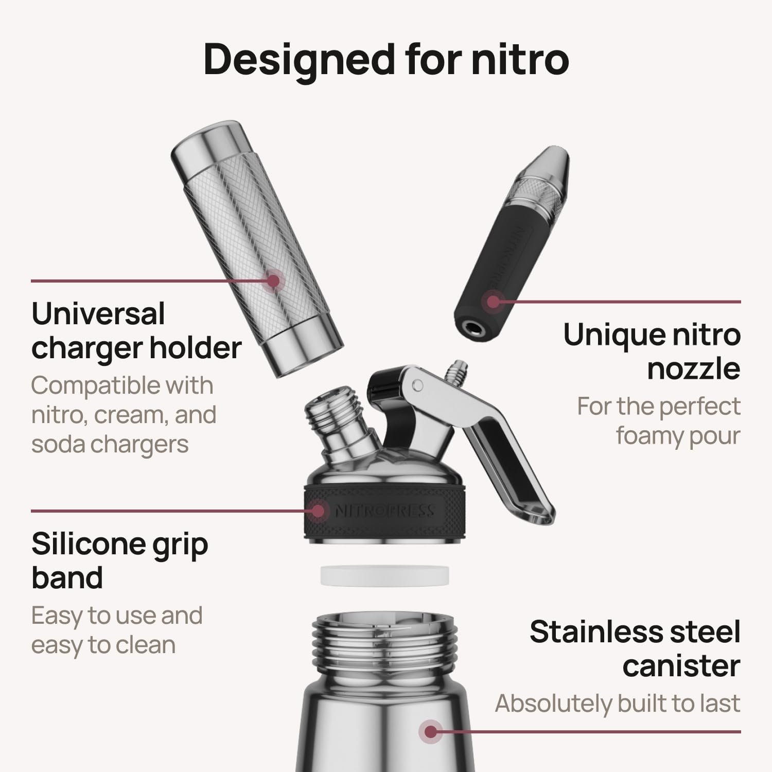 Discover the NitroPress, your key to crafting delicious nitro cold brew at home. With sleek design and easy functionality, it elevates your coffee experience. Explore our range of NitroPress models and accessories for the ultimate brewing setup. Enjoy café-quality drinks!