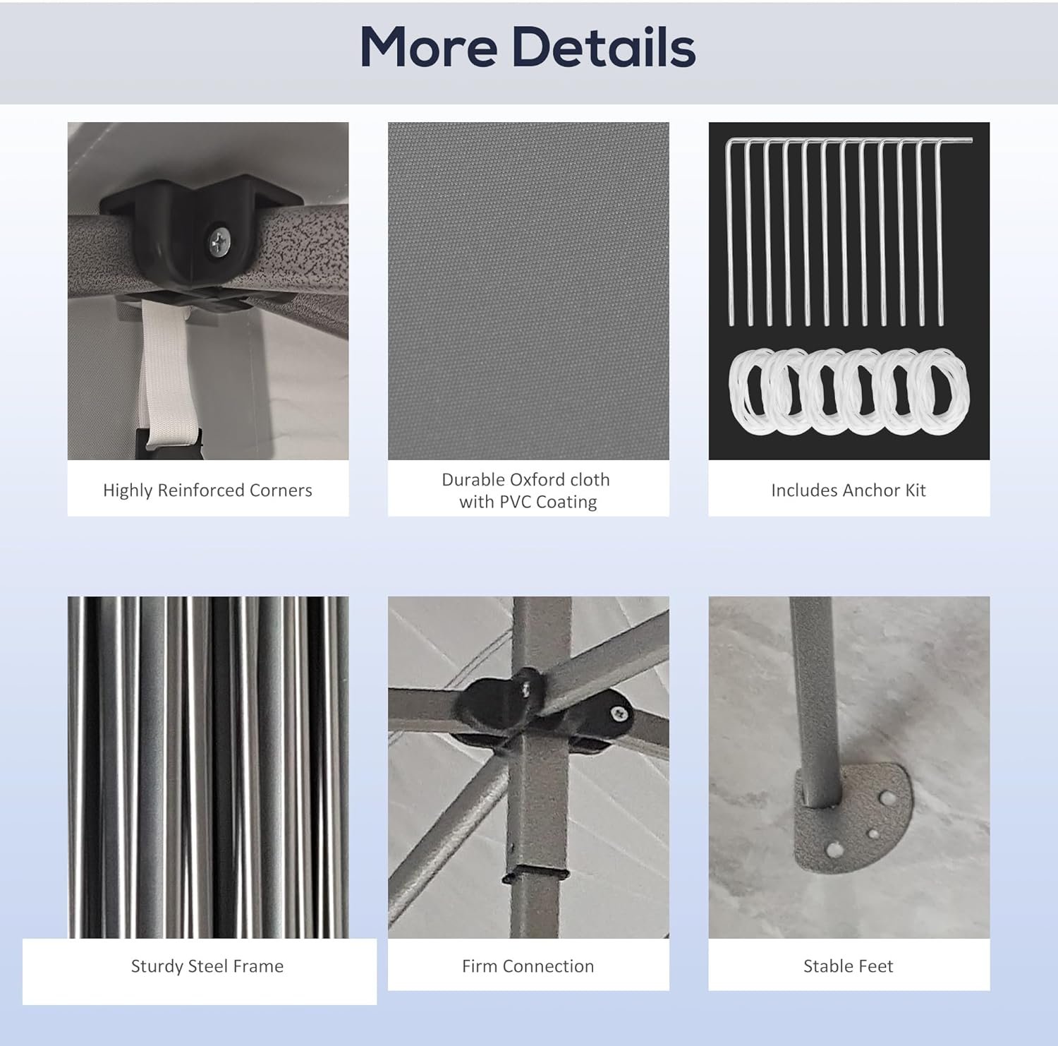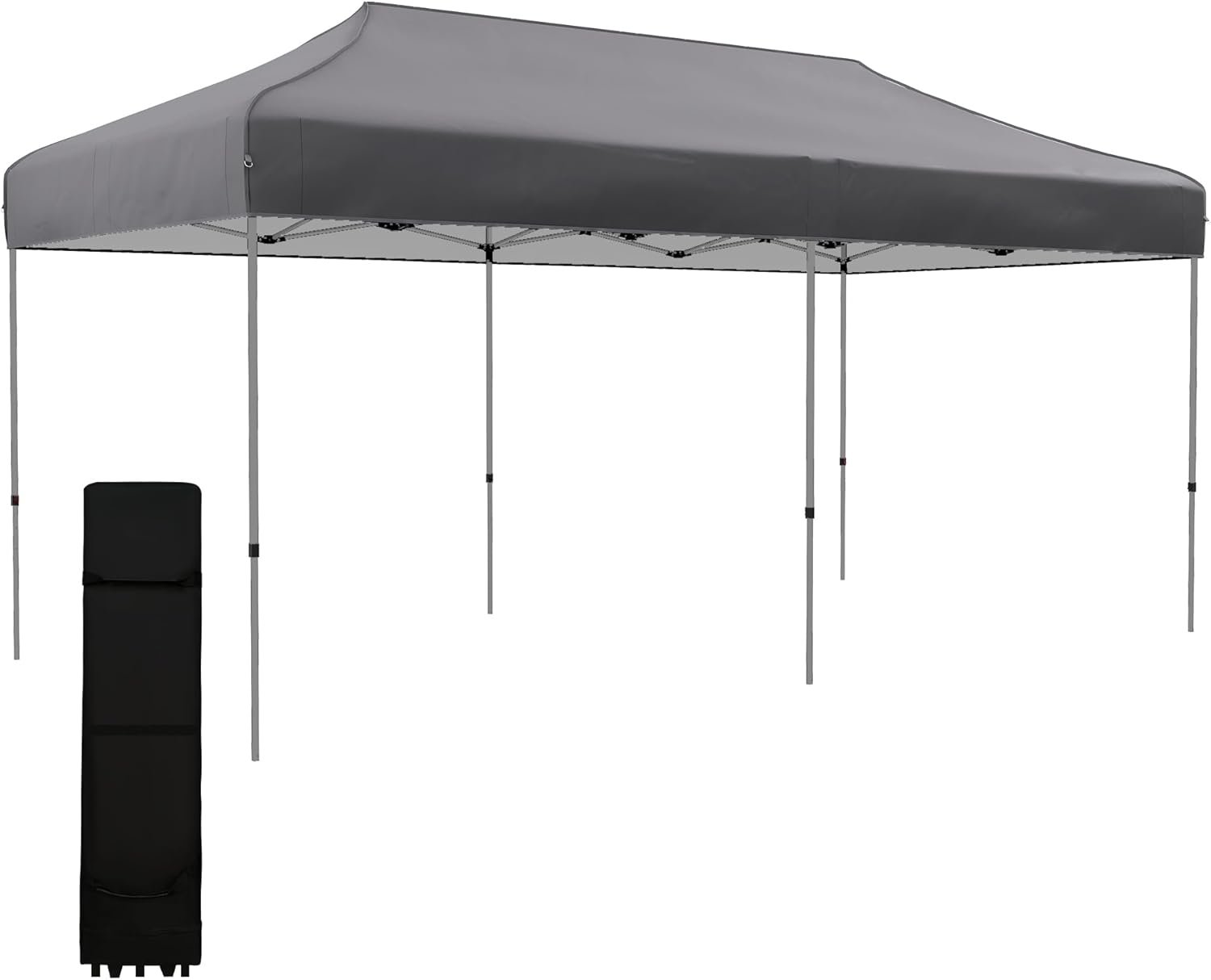 Outsunny 10′ x 20′ Pop Up Canopy Tent, Instant Sun Shelter with 3-Level Adjustable Height, Easy up Outdoor Tent for Parties with Wheeled Carry Bag for Garden, Patio, Gray