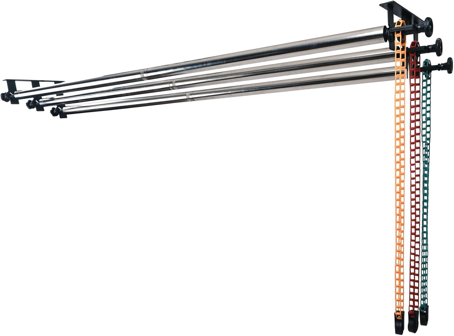 The versatile kit includes 6 rollers, 2 brackets, 2 light stand adapters, 3 chains, 3 counterweights, and 3 stainless steel tube crossbars (118″/3m) for easily raising and lowering backdrops. Ideal for small or home studios, it features a manual pulley system for quick background changes. The easy-to-assemble crossbars consist of three 3-meter sections, each made from sturdy materials, ensuring secure mounting and wrinkle-free backdrops. This durable construction guarantees long-lasting performance, making it suitable for various photography needs.