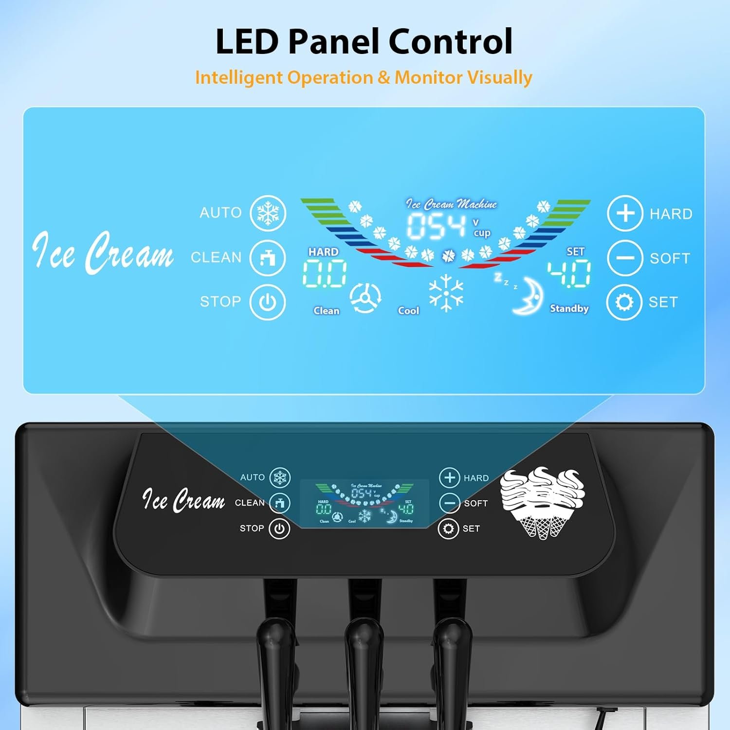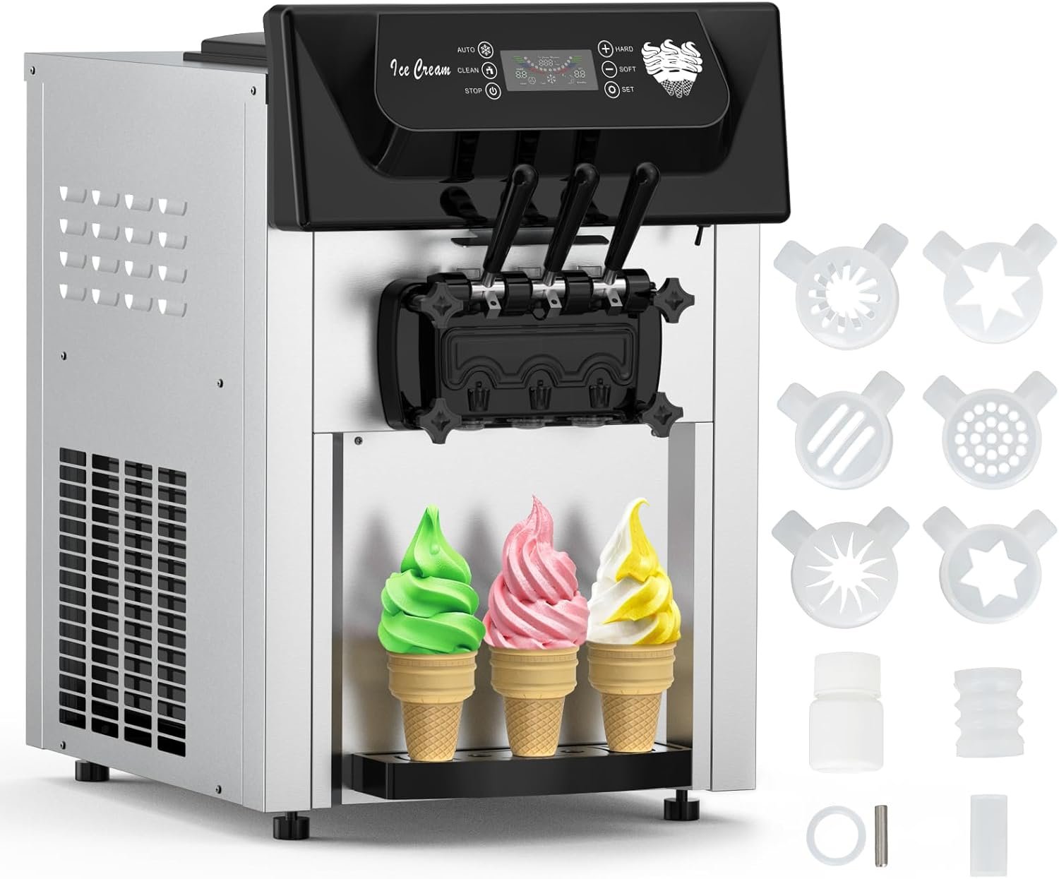 PioneerWorks Commercial Ice Cream Maker,2200W, 5.3 to 7.4 Gal/Hour, 3 Flavors Commercial Soft Ice Cream Machine with LED Display, Perfect for Restaurants Snack Bar