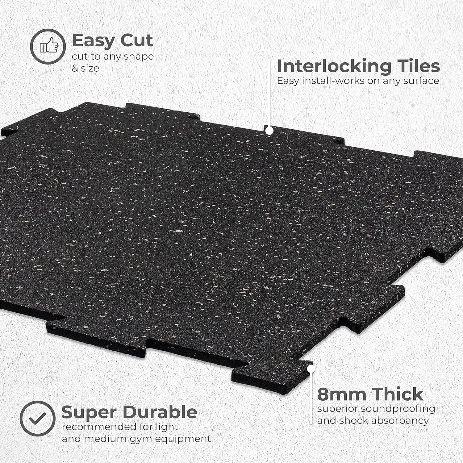 Playsafer Genaflex Lite Rubber 8mm Interlocking Tiles for Gym Flooring, Exercise Equipment, Exercise Areas – 20″ X 20″