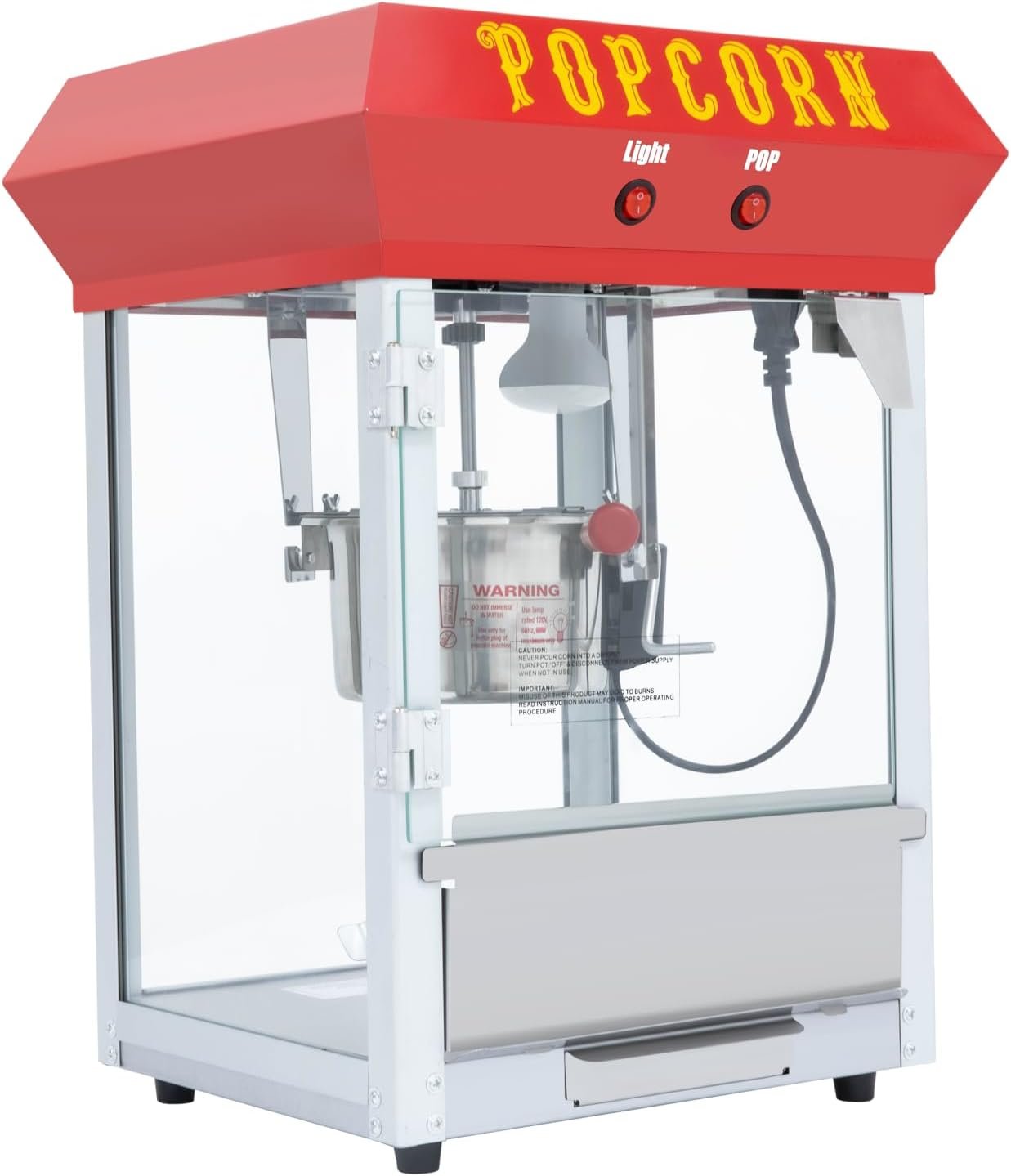 The 6OZ Popcorn Maker Machine features a powerful 600W stainless-steel kettle for fluffy popcorn, with a heated deck and an old maids drawer for easy cleanup. Its user-friendly design includes tempered glass and independent controls for efficient operation. Mounted on a mobile cart with storage, it’s perfect for parties and events. The vintage style adds charm, evoking the feel of old movie theaters. Complete with serving accessories and easy assembly, it’s ideal for family nights and gatherings, making popcorn preparation convenient and enjoyable.