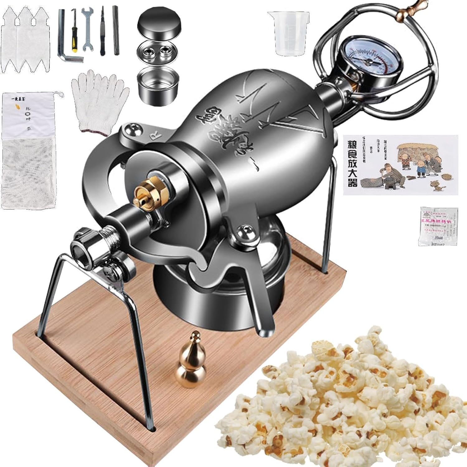 This retro mini popcorn maker, made of stainless steel, requires careful usage: fill the container halfway, tighten screws, and ensure pressure reaches 0.9 before removing popcorn. It’s designed for home use, allowing customization with various toppings. The machine features easy instructions, a precise pressure gauge, and offers a vintage aesthetic, making it a fun addition to any gathering. Not suitable for children and should not exceed 15 minutes of preheating. It’s an ideal gift for popcorn lovers.