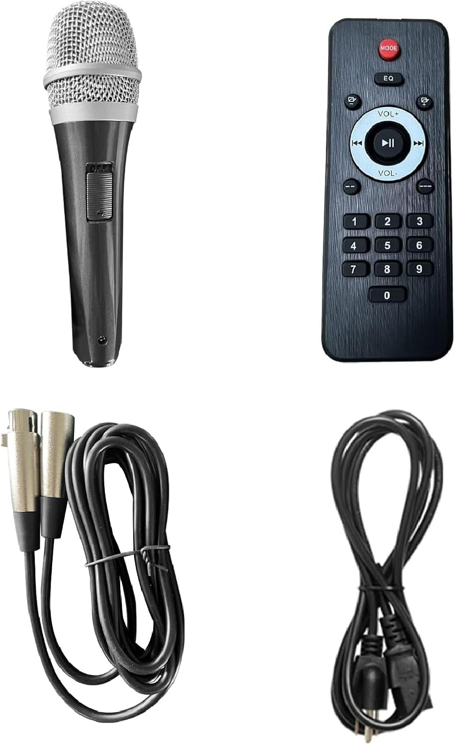 ★PACKAGE INCLUDES: 1 15” Active speaker box, 1 Wired microphone, 1 Speaker stand, 1 Remote control.