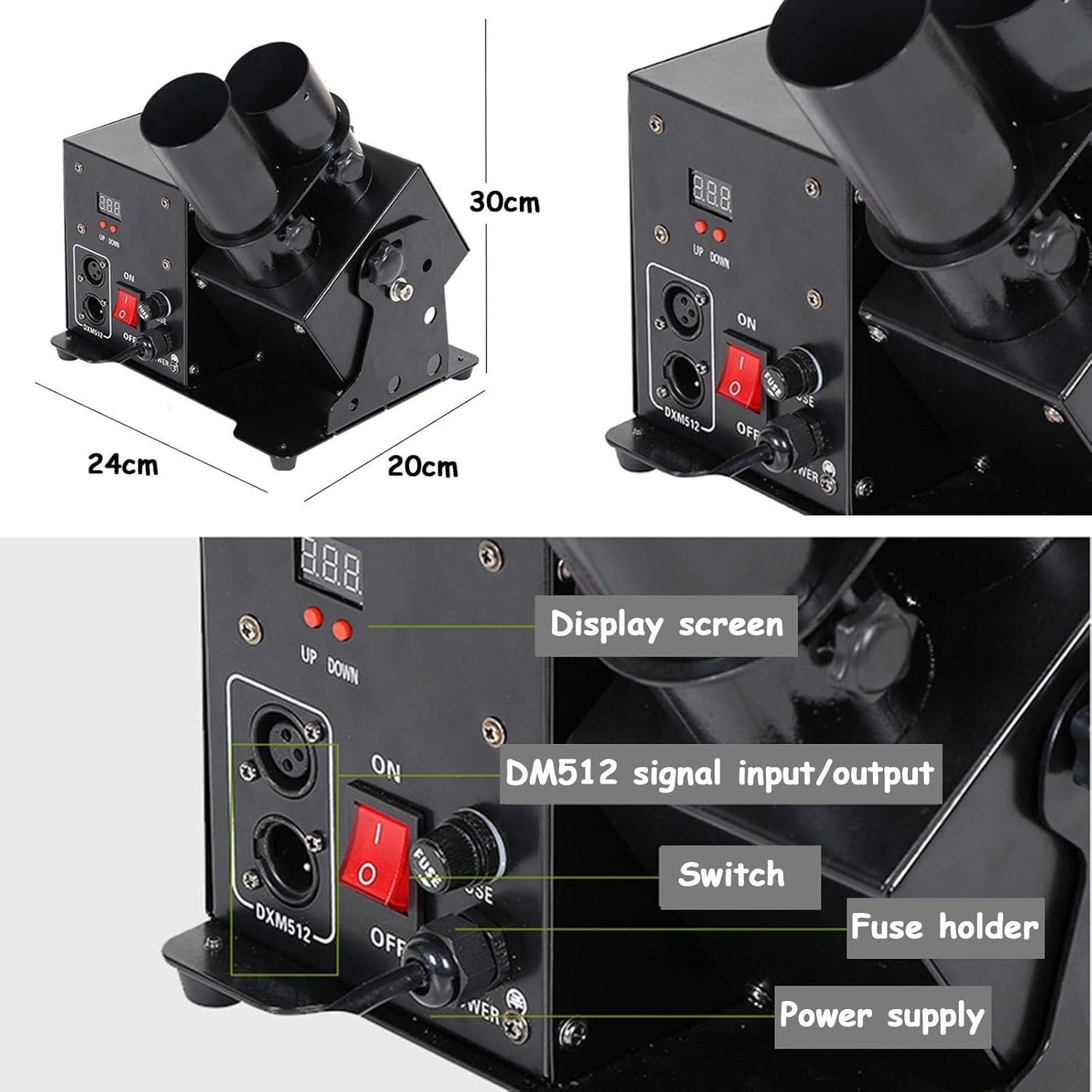 The Portable Electric Confetti Cannon Machine is a high-performance launcher ideal for parties, weddings, and events. With a dual-head design, it shoots colorful confetti up to 10-15 meters high, creating an impressive visual experience. It offers remote control and DMX512 integration for easy operation. The powerful fan ensures confetti floats effectively, covering up to 150m². Built from durable materials with adjustable angles, it allows customizable confetti direction. Perfect for various celebrations, including Halloween and Christmas, it enhances any occasion’s festive atmosphere. Note: confetti paper is not included.