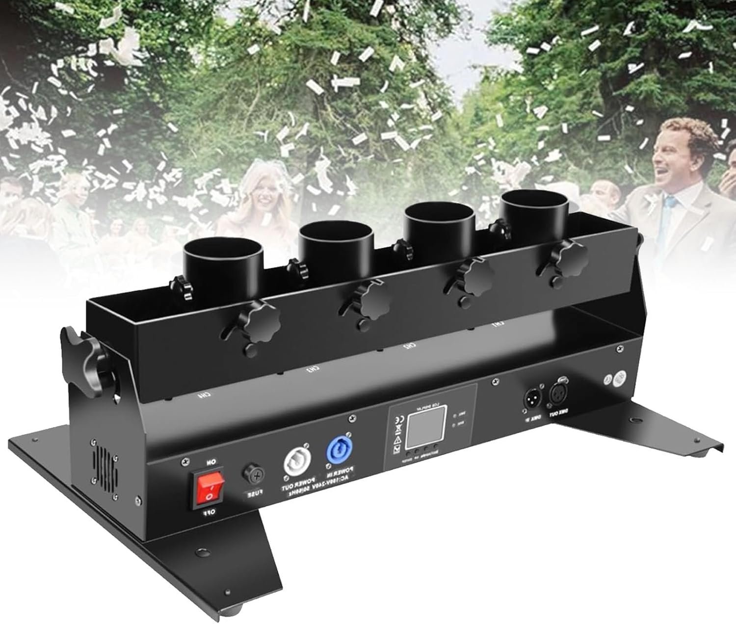 Professional Confetti Launcher Machine, 4 Heads Confetti Blower Machine Confetti Remote Control for Weddding Show Club Stage Party